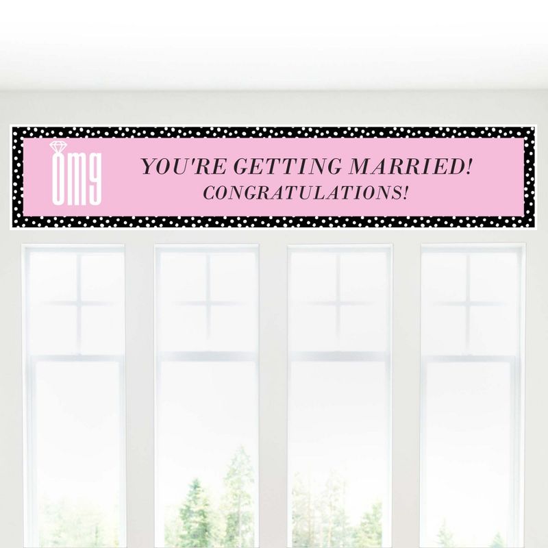 OMG, You're Getting Married! Engagement Party Banner is an impressive engagement party decoration for your bridal shower party. SIZE: OMG, You're Getting Married! Engagement party banner measures 1 foot by 5 feet. ENGAGEMENT PARTY DECORATIONS: An OMG, You're Getting Married! Engagement Party Banner is an easy way to decorate for your party and bring your black and pink theme to life. Hang at the entrance of your engagement party, over the food table or candy buffet, at the gift table or behind the head table. OMG, You're Getting Married! Engagement Party Banners are also great when displayed outdoors to welcome all of your engagement party guests as they arrive. PREMIUM ENGAGEMENT PARTY SUPPLIES: OMG, You're Getting Married! Engagement Party Banner is professionally printed on premium-grade satin paper with a photo-like shine. Each banner is individually inspected then carefully packaged by hand and rolled into a protective sleeve. All engagement party banners INCLUDE non-marking adhesive wall mounts for easy display. MADE IN THE USA: OMG, You're Getting Married! - Engagement Decorations Party Banner is designed and manufactured at our Wisconsin facility using materials that are Made in the USA.