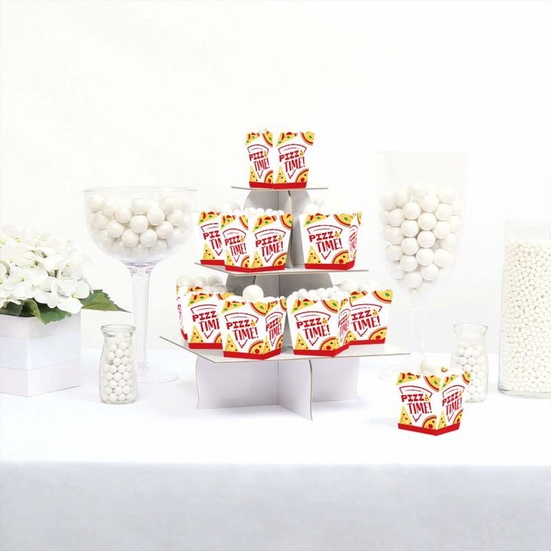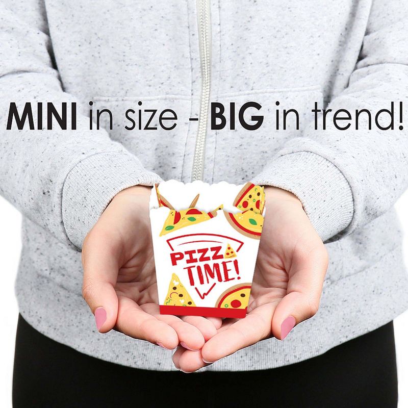 Pizza Party Time Mini Candy Boxes INCLUDES 12 pizza party baby shower or birthday party favor boxes. Pizza Party Time mini candy treat boxes are perfect for any event. The kids pizza theme is great for a baby shower or birthday party. Pizza Party Time party favor mini candy boxes SIZE 2.75 inches tall x 3 inches square at the top. The unique design makes these 12 pizza favor boxes a must-have for any baby shower or birthday party. CANDY BOX PARTY SUPPLIES: Pizza Party Time candy boxes will hold a variety of party food. Fill them with sweet treats or salty snacks. Candies and other goodies will look amazing on your candy buffet with these pizza party favor boxes. PREMIUM PARTY FAVOR BOXES: Pizza Party Time party candy boxes are professionally printed on heavy-duty card stock paper with a photo-like shine. They are hand-folded and individually inspected, then carefully packaged. Candy boxes will arrive flat, partially assembled. Finishing assembly is required but it is easy. MADE IN AMERICA: Pizza Party Time - Mini Candy Boxes Baby Shower or Birthday Party Favors are designed and manufactured at our Wisconsin facility using materials that are Made in America.