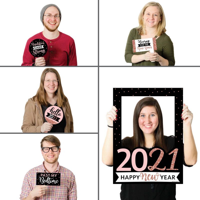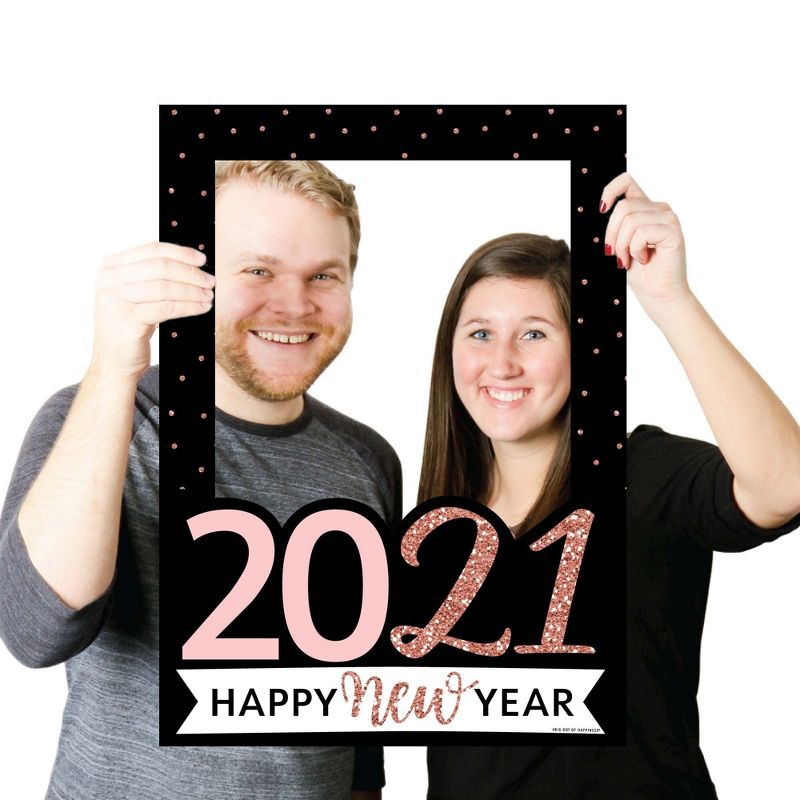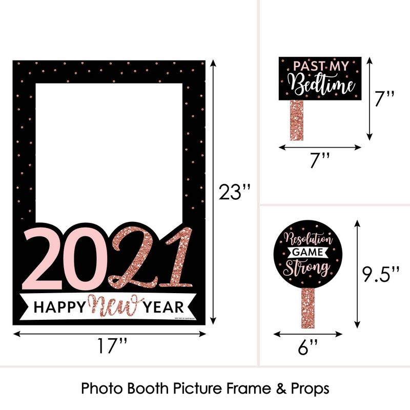 5-Piece Photo Booth Frame and Props Kit INCLUDES 1 Rose Gold Happy New Year photo booth picture frame prop, 2 round photo booth props and 2 rectangle photo booth props - Great for a New Year's Eve party. Take entertaining and shareable party photos of your friends and family while making memories with funny Happy New Year photo booth props! PERFECT FOR ANY CROWD! Photo booth props are fun Rose Gold Happy New Year party supplies for adults and kids - everyone will love posing with cute New Year's Eve party photo booth props. Photo Frame Props Kit MEASURES 17 inches x 23 inches (Picture Frame), 6 inches x 9.5 inches, including the handle (2 Round Props) and 7 inches x 7 inches, including the handle (2 Rectangle Props). New Year's EVE PARTY DECORATIONS: There are many fun ways to use these Rose Gold Happy New Year Party photo booth picture frame props! Style a cute photo booth with a coordinating backdrop for perfect selfies; display photo props around your event for different photo stations; or carry them from guest to guest and be sure to take cute party pics with everyone! HIGH-QUALITY PARTY SUPPLIES: Rose Gold Happy New Year Party photo booth props are professionally printed on durable, corrugated plastic. They will arrive cut out and ready to use. Rose Gold Happy New Year Party Photo Booth Picture Frame & Props are waterproof and can be used outdoors, in any weather and at any location. MADE IN THE AMERICA: Rose Gold Happy New Year Party New Year's Eve Party Photo Booth Picture Frame & Props are designed and manufactured at our Wisconsin facility using materials that are Made in the USA. Rose Gold photo booth props use a No-Mess Glitter Print: Our photo booth props are designed with a printed image of glitter, eliminating glitter flake while maximizing bling effect!