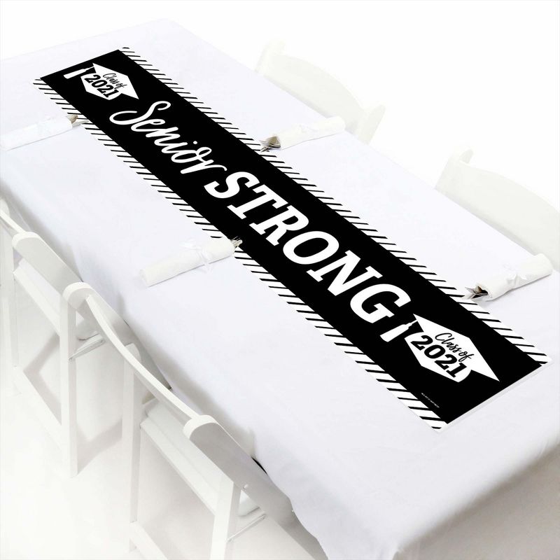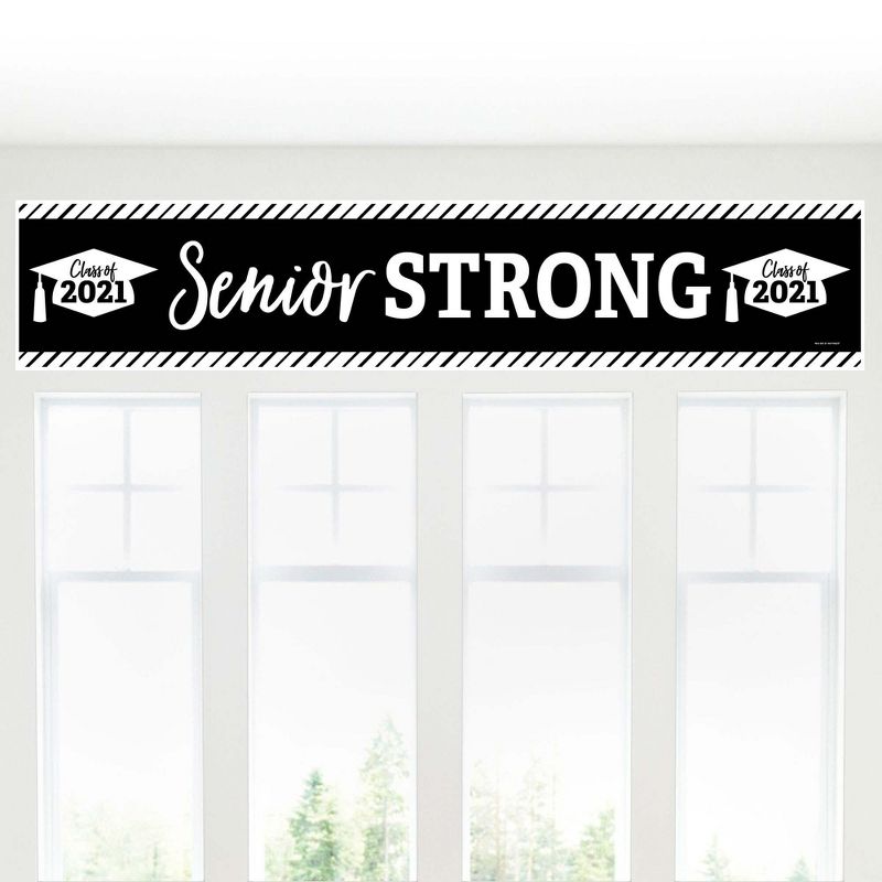 Senior Strong Banner is an impressive graduation party decoration for your graduation party theme. SIZE: Senior Strong graduation party banner measures 1 foot by 5 feet. GRADUATION PARTY DECORATIONS: A Senior Strong Graduation Party Banner is an easy way to decorate for your party and bring your graduation party theme to life. Hang at the entrance of your graduation party, over the food table or candy buffet, at the gift table or behind the head table. Senior Strong banners are also great when displayed outdoors to welcome all your graduation party guests as they arrive. PREMIUM GRADUATION PARTY SUPPLIES: Senior Strong Banner is professionally printed on premium-grade satin paper with a photo-like shine. Each banner is individually inspected then carefully packaged by hand and rolled into a protective sleeve. All Senior Strong graduation party banners INCLUDE non-marking wall mounts for easy display. MADE IN THE USA: Senior Strong - Graduation Party Decorations Party Banner is designed and manufactured at our Wisconsin facility using materials that are Made in the USA.