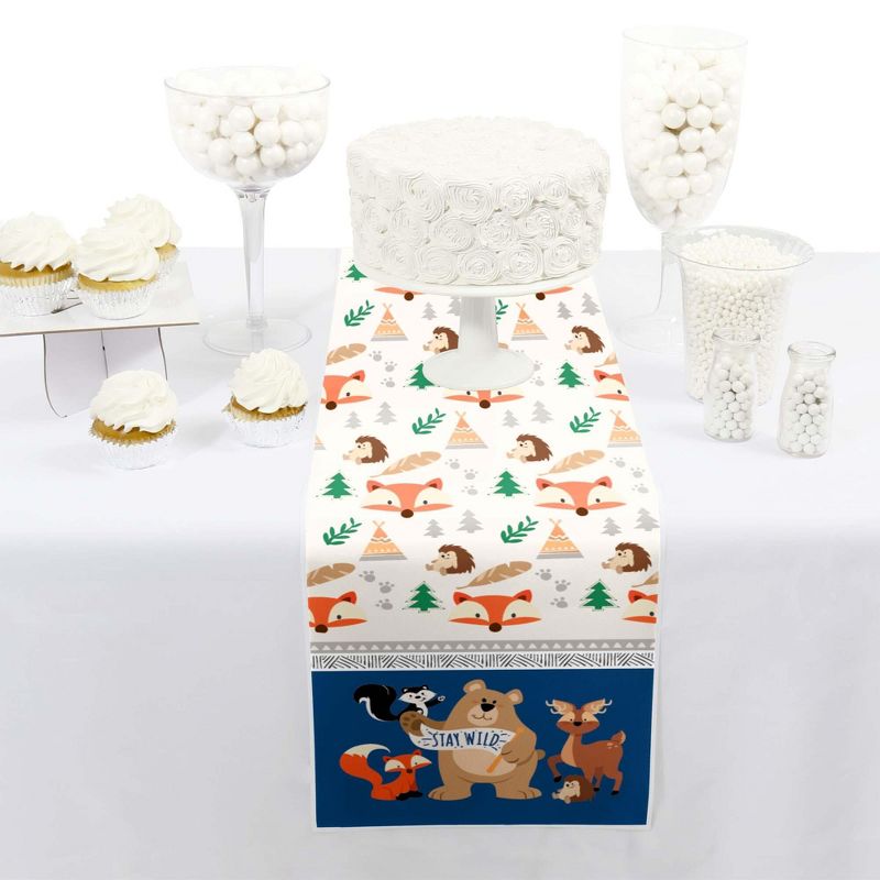 Stay Wild - Forest Animals paper table runner is a perfect baby shower or birthday party decoration for gift tables, candy buffets or dining tables. SIZE: Stay Wild - Forest Animals baby shower or birthday party petite table runner measures 1 foot by 5 feet. EASY FOREST FRIENDS PARTY DECORATIONS: Stay Wild - Forest Animals Party Table Runner is an easy way to decorate for your baby shower or birthday party and bring the woodland creatures party theme to life. Easily dress up any food or gift table with this cute paper table runner. PREMIUM WOODLAND CREATURES PARTY SUPPLIES: Stay Wild - Forest Animals petite table runner is professionally printed on premium-grade satin paper with a photo-like shine. Each paper table runner is individually inspected then carefully packaged by hand and rolled into a protective sleeve. Paper table runners are water-resistant and will make your party clean up a breeze! MADE IN THE USA: Stay Wild - Forest Animals - Petite Birthday Party or Baby Shower Paper Table Runner is designed and manufactured at our Wisconsin facility using materials that are Made in the USA.