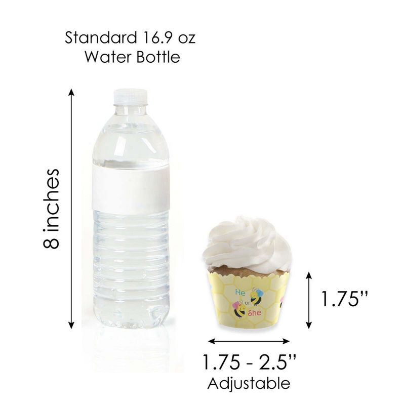 What Will it Bee Cupcake Wrappers and Treat Picks Kit INCLUDES 24 assorted shaped paper cut-outs, 24 clear treat picks, 24 cupcake wrappers, and adhesive dots for easy assembly. DIY What Will it Bee cupcake decoration kit is perfect for any gender reveal party. Plastic clear treat picks SIZE measure 4" tall and are packaged in a food-safe environment. What Will it Bee shaped paper cut-outs vary in size and coordinate well with pick size. Cupcake wrappers are cut with a decorative edge and adjust to fit cupcakes 1.75" - 2.5" Wide. Wrappers measure 1.75" Tall. Wrappers are meant for one-time-use only and should not be baked. EASY PARTY DECORATIONS: What Will it Bee Gender Reveal Party Cupcake Decoration Kit makes it easy to style a bumble bee theme party. Use the set of 24 to style the perfect dessert buffet or create impressive cupcake tower centerpieces. PREMIUM PARTY SUPPLIES: Clear treat picks are made of food-grade plastic and are packaged in a food-safe environment. The What Will it Bee paper cut-out toppers are professionally printed, double-sided on sturdy cardstock paper with themed art on one side and a coordinating pattern on the back. Cut-outs will quickly attach to the clear picks with included adhesive dots and then easily insert into your party appetizers or desserts. EASY ASSEMBLY INSTRUCTIONS INCLUDED: Clear treat picks and What Will it Bee shaped cut-outs and cupcake wrappers are packaged with easy assembly instructions.