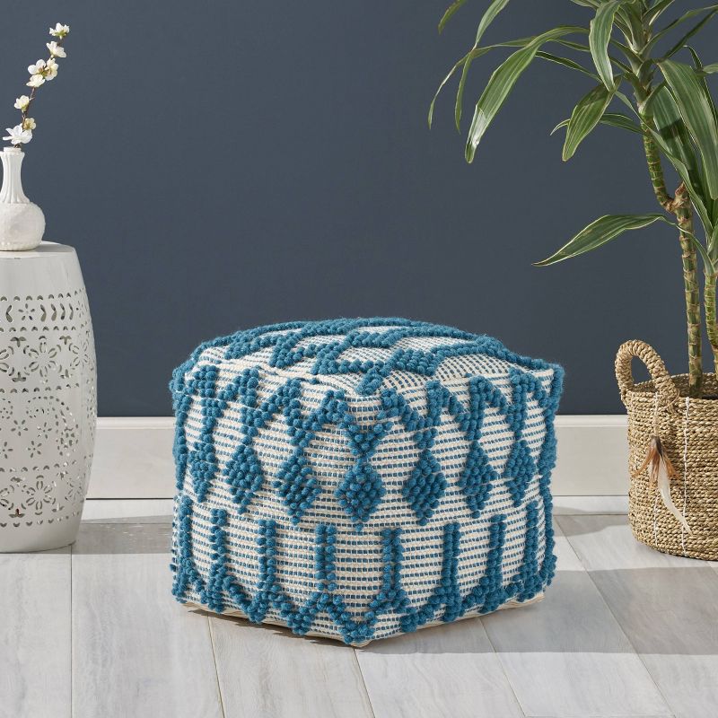 Bring home an excellent addition for your seating arrangement that offers texture and design. Featuring a tufted geometric pattern, this Christopher Knight Home Birchglen Boho Large Ottoman Pouf offers your indoor space an uplifting atmosphere with a finishing hand-crafted touch. Whether this is used as a footrest, casual seating, a side table, or purely for decorative purposes this piece can be used in a multitude of ways. Seamlessly blending into any arrangement with its understated design, this Christopher Knight Home Birchglen Boho Large Ottoman Pouf is not only one-of-a-kind but is also resilient, making this the perfect indoor accessory.