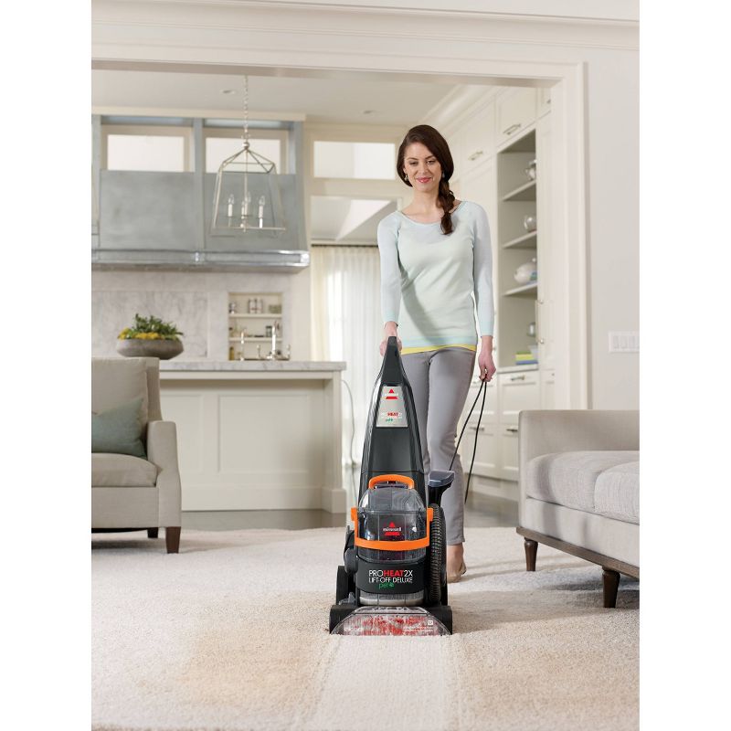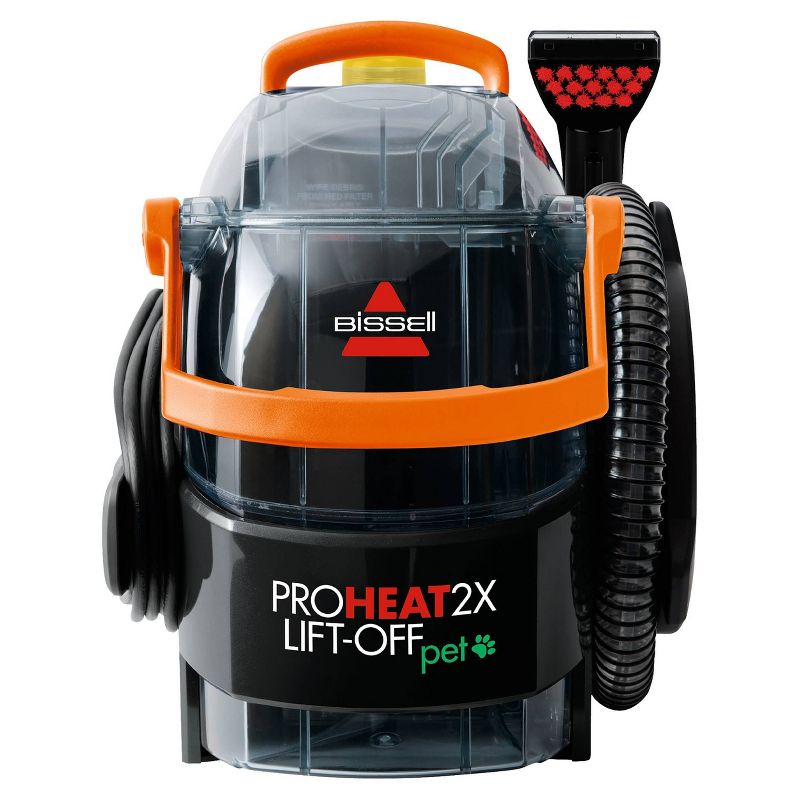 The BISSELL ProHeat 2X Lift-Off Upright Carpet Cleaner doesn’t just deep clean your carpets, it also refreshes them. Its unique design gives you a carpet cleaner in two ways: an upright deep cleaner and a detachable portable carpet cleaner. The portable carpet cleaner comes in handy when cleaning pet messes in the car, on upholstery, on stairs, and in other tricky places where pet messes may happen. The upright carpet cleaner function is perfect for washing carpets in whole rooms. The ProHeat 2X Lift-Off Pet comes with two rows of PowerBrushes that tackle dirt sitting deep in carpet fibers while the machine’s Heatwave Technology helps maintain water temperature throughout the cleaning process.
