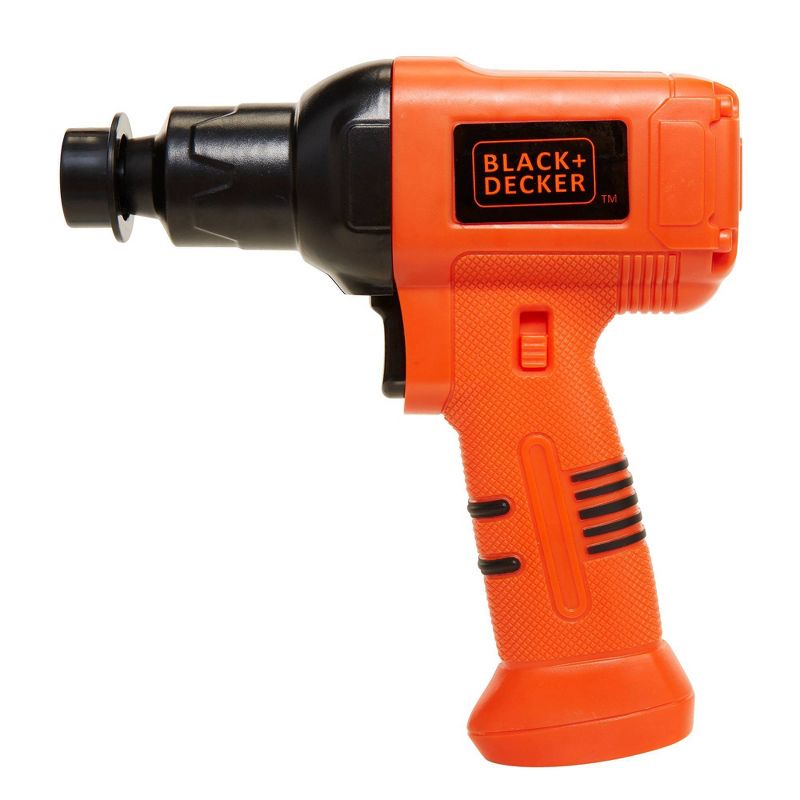 The Black & Decker Power Play Tools all have realistic sounds and features for an awesome play construction experience. Modeled after the real thing, when you squeeze the trigger on the Impact Wrench the socket really spins while making authentic sounds. The Impact Wrench includes batteries as well, so kids can start playing with it right away – no batteries required. The other Power Play Tools all come with great, realistic features as well. Collect the Nail Gun, Power Drill, and Jigsaw to build up your collection of toy Black & Decker tools!