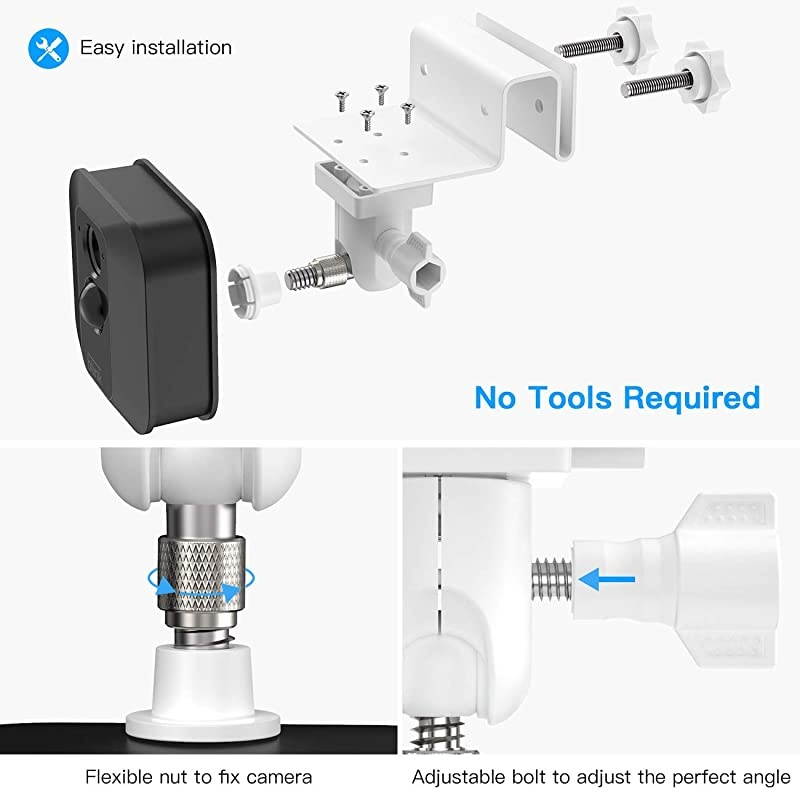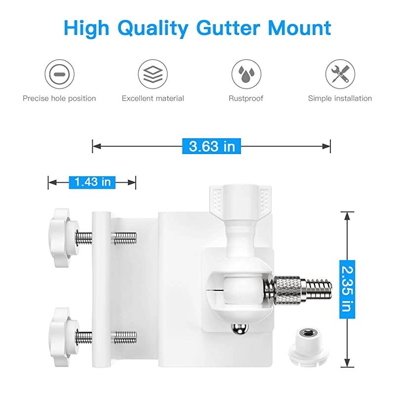 *****IMPROVING SAFETY: The Gutter Mount designed for Blink XT/XT2 and other compatible cameras gives a perfect view for surveillance. With our rust-proof gutter mount, the camera can be mounted high, reducing man-made damage and extending your Blink camera life. *****FLEXIBLE POSITIONINGOur Gutter Mount can easily be adjusted with 360-degree swivel and 90-degree tilt, allowing the flexible positioning of your Blink XT camera. It features a strong and secure angle lock that will enable your camera to remain in the same position. *****EASY INSTALLATIONThe installation requires neither specialized tools nor complex steps. Our gutter mount can be installed according to the thickness of the mounting plate (Need to remove the screw on the gutter mount and replace the up and down direction). Once the camera is mounted on the gutter base, simply install it into the gutter plate and find the perfect angle.