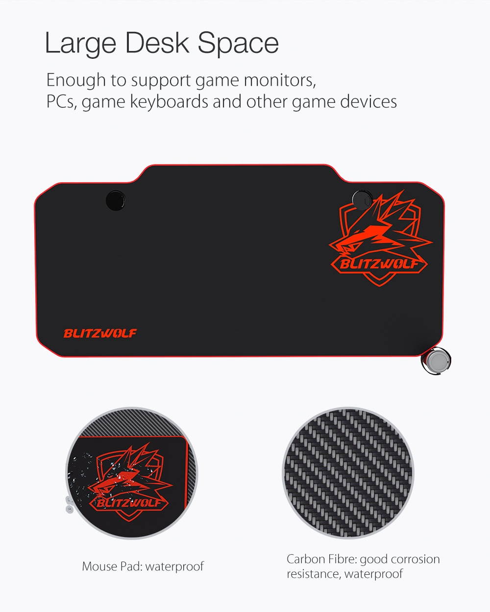 Buy BlitzWolf® BW-GD2 Gaming Desk 55'' Wide Spacious Desk Computer Table Gamer Workstation Ergonomic Design with Full Desk Mouse Pad Game Handle Rack Cup Holder and Headphone Hook Holder for Home Office in United States - Cartnear.com