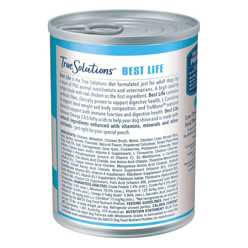 •Contains one (1) 12.5-oz can of BLUE True Solutions Best Life Natural Medium Breed Adult Wet Dog Food, Chicken