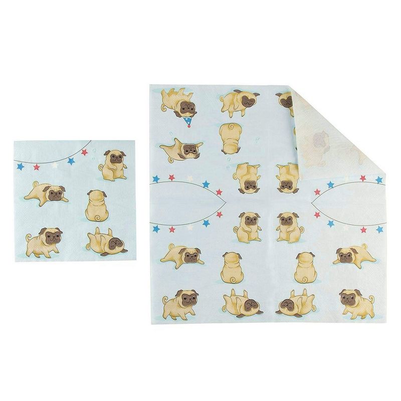 • ANIMAL LOVER PARTY SUPPLIES: Paper plates and napkins feature a playful design of pug puppies over a light blue background; create a perfectly coordinated theme for children's birthdays, family events, baby showers, luncheons, and classroom parties