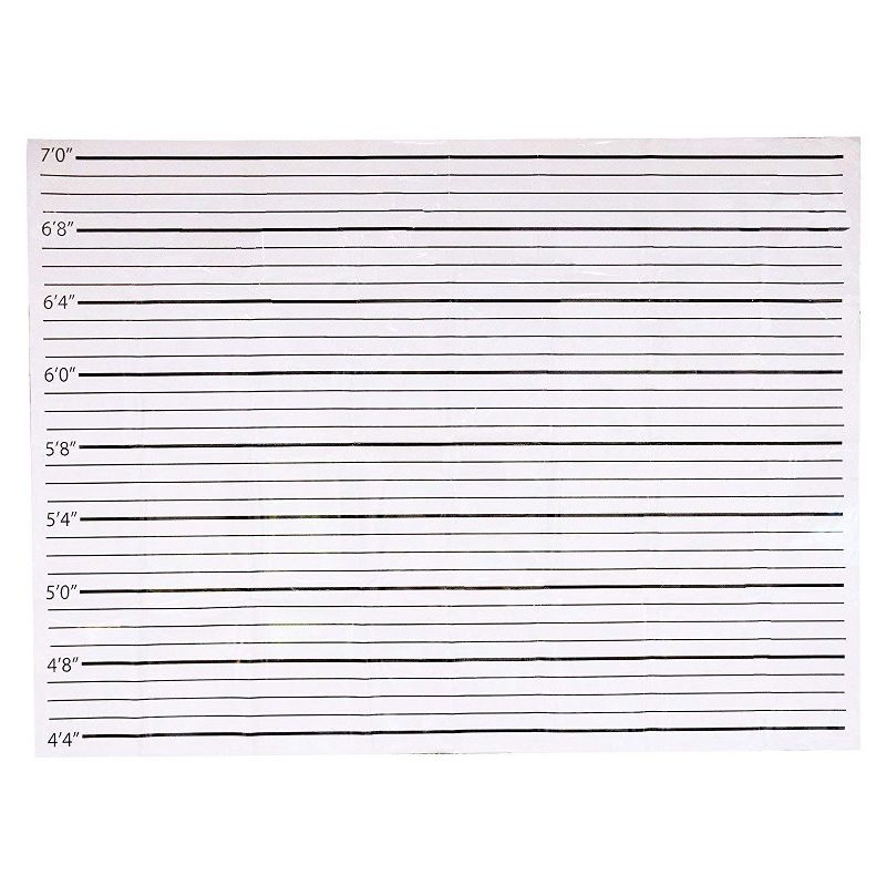 • DIMENSIONS: Black striped white background height chart: 62 x 46 inches; mug shot signs: 11.5 x 7.5 inches.