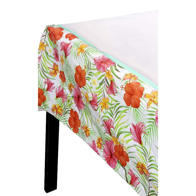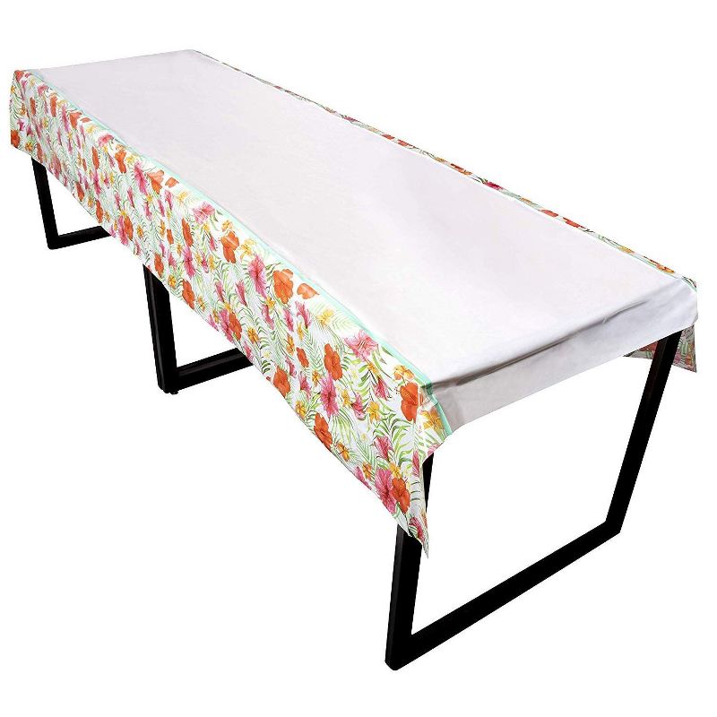 Are you planning a tropical themed party? This table cover is the ideal tablecloth for adding more colors to your event. The tropical floral pattern drape down on the side of the table. It not only adds the perfect touch to your theme party but also helps you to clean up easily! You don't need to worry about kids spilling drinks or making a mess with doing arts and crafts. You can simply toss out the table cover after use along with any disposable silverware. You can also reuse them for future parties by wiping down any spills or crumbs.