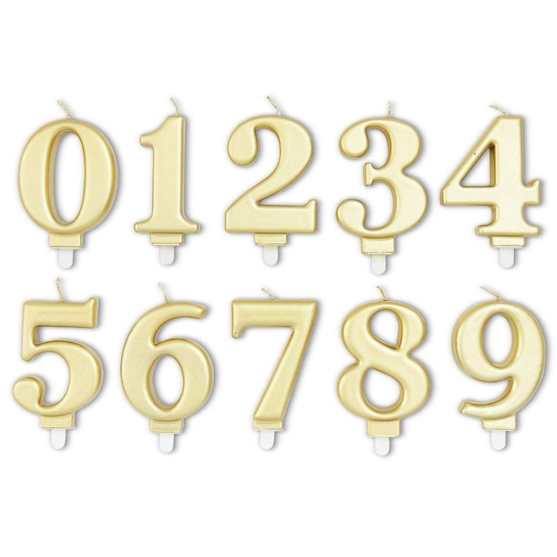 • WHAT’S INCLUDED: Set Includes numbered candles 0-9 and 24 gold metallic thin candles; 34 total