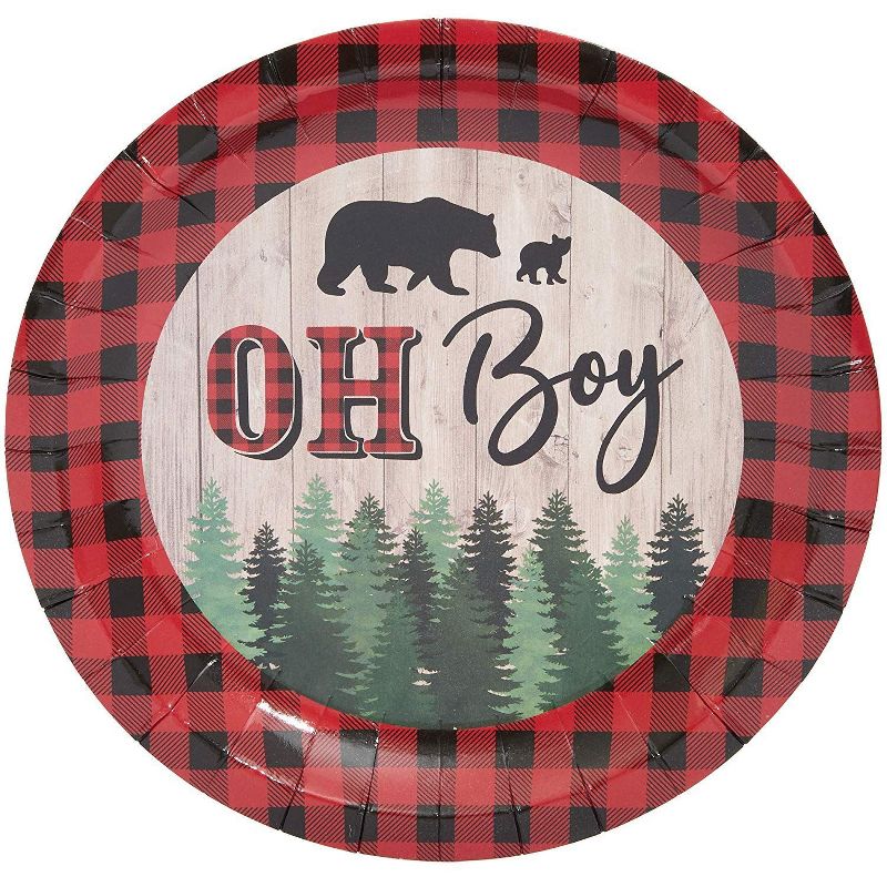 80Pcs Oh Boy Lumberjack Plaid Disposable Paper Plates 7" for Baby Shower Party x 1