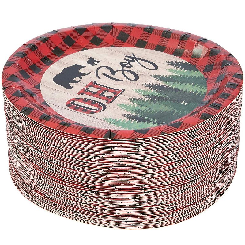 • Serves 90: Our Oh Boy lumberjack baby shower set includes 80 red party plates that will instantly elevate your dining table, buffet, or dessert table setting
