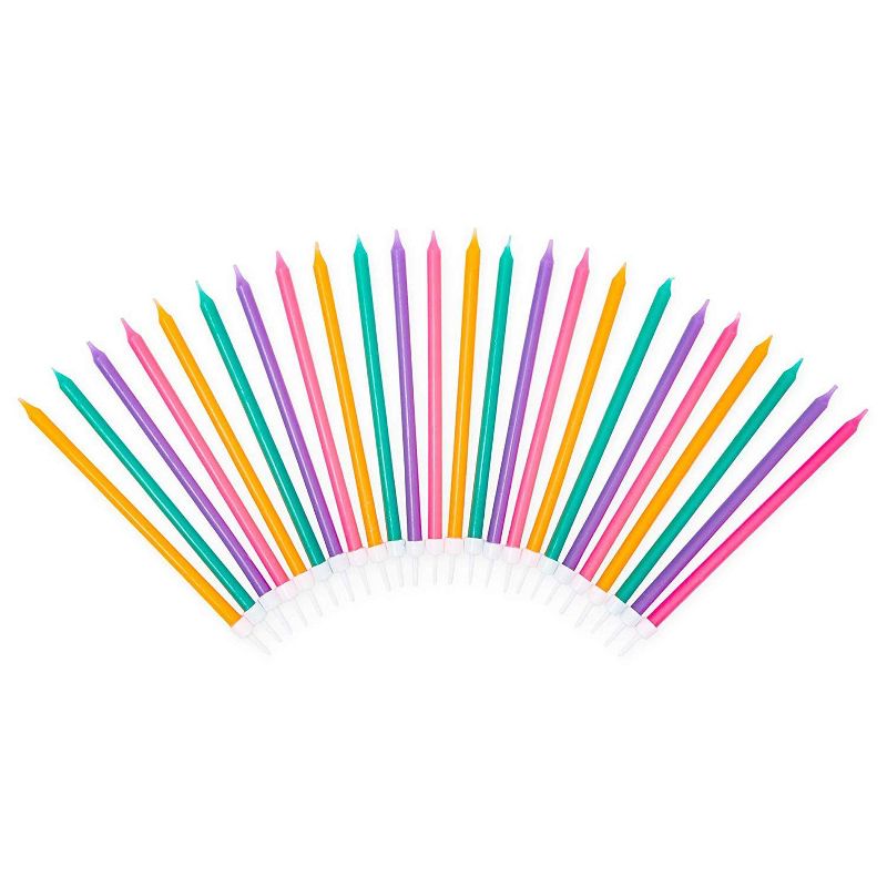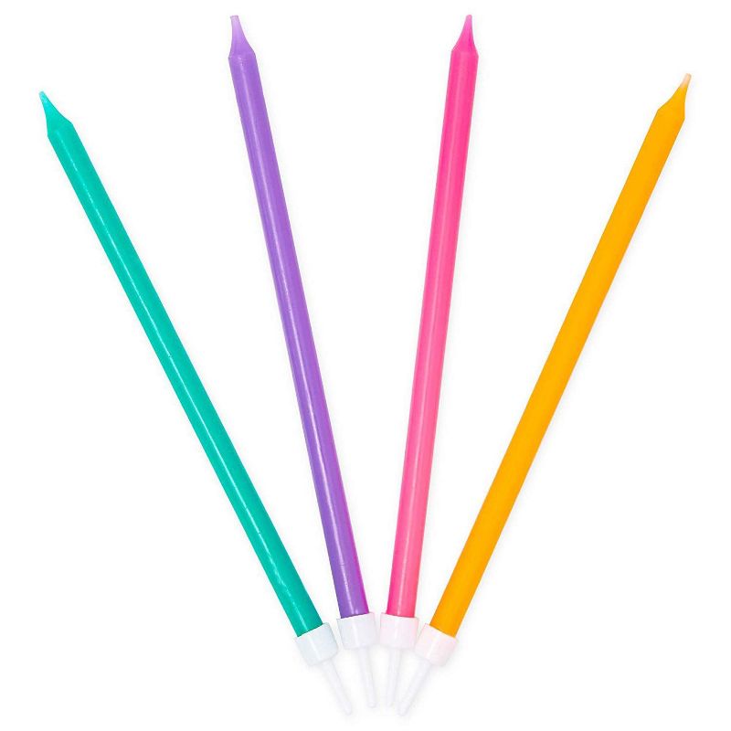 • WHAT'S INSIDE: Includes 1 "Make a Wish" topper candle and 24 thin candles in 4 neon colors; orange, green, pink, and purple
