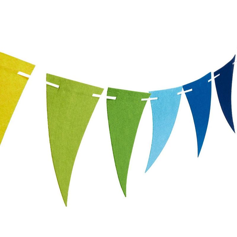 Create the perfect birthday party atmosphere with this set of 4 felt banners. Set includes 1 rainbow "Happy Birthday" banner and 3 rainbow pennant banners. These soft felt banners are perfect for display both indoors and outdoors (in good weather). These banners are prestrung and suitable for birthday parties for both adults and children alike. These birthday banners are versatile: string a banner up outdoors if weather permits to show that a birthday party is going on at your house, string others up in the room where the birthday party takes place, string others up in the hallway leading up to the room. The possibilities are endless.