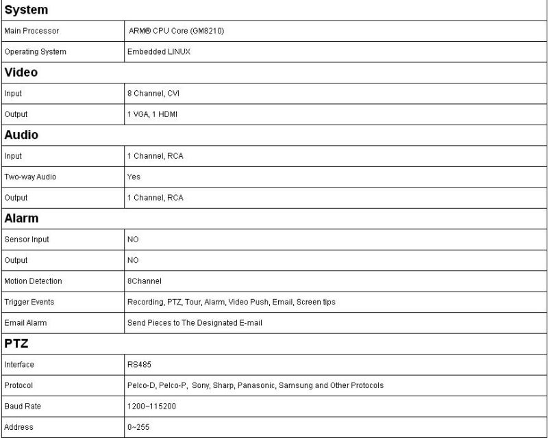 BlueCCTV HD-CVI CCTV 8ch DVR HD CVR System HD 720P 120FPS, 1080P at 60FPS, HDMI VGA Outputs 1TB