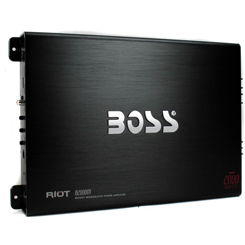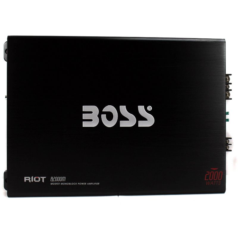 The BOSS **R2000M** 2000W Riot Monoblock Car Audio MOSFET Power Amplifier provides 2000 Watts of MAX power! This Class A/B Amplifier features a MOSFET power supply, a Soft Turn-On Circuit, Thermal Overload & Speaker's Short Protection, Power & Protection LEDs, and a Remote Subwoofer Level Control. The BOSS **R2000M** 2000W Riot Monoblock Car Audio MOSFET Power Amplifier can power any car audio application!