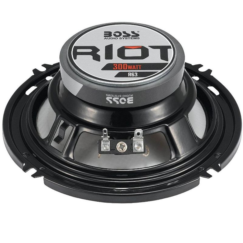 This sleek, black pair of Boss R63 6.5 inch 3 way car audio speakers features a maximum power of 300 watts with an impedance of 4 ohm. Other features include the aluminum voice coil material with a 1 inch midrange and a 0.5 inch tweeter.