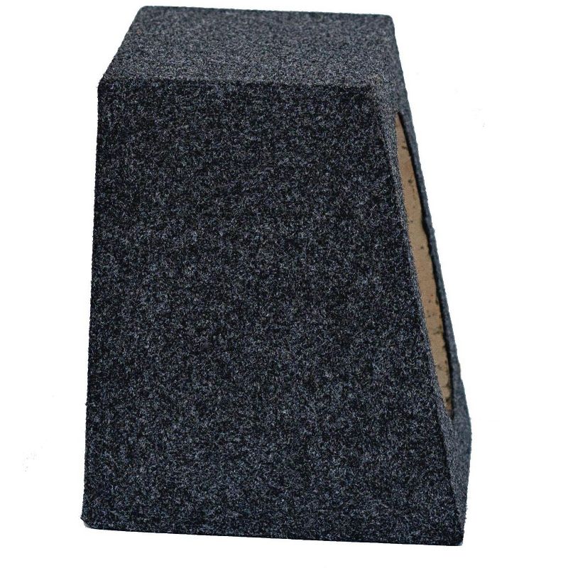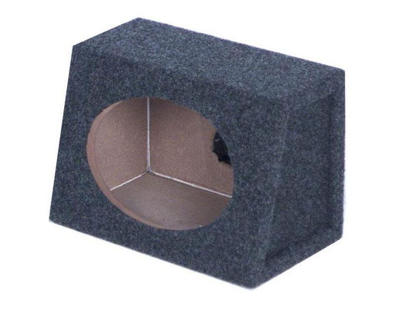 The Q POWER QTW6X9 Angled Style 6"x9" Car Audio Speaker Box Enclosures feature solid 5/8" MDF construction, charcoal carpet covering, and terminal cup connectors.