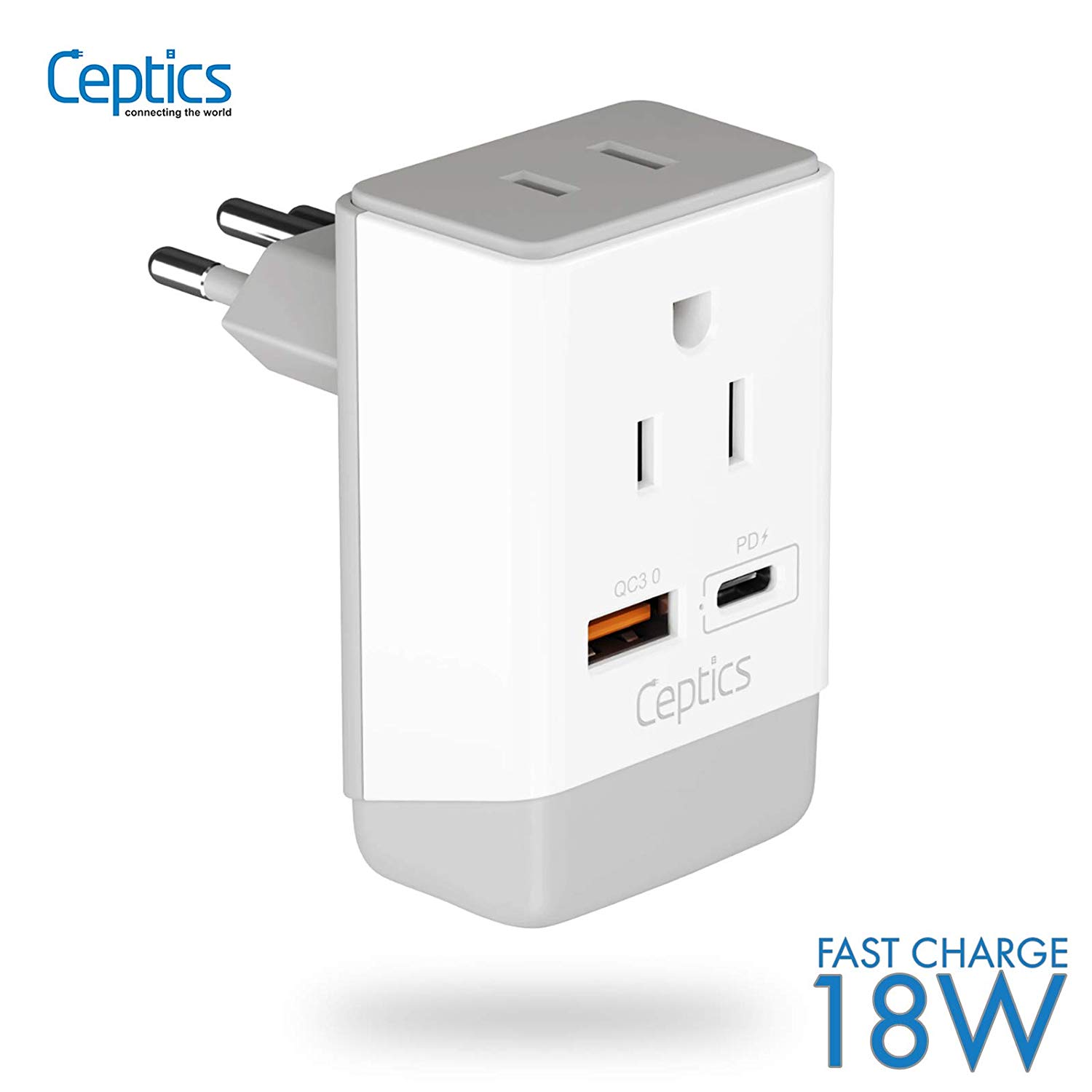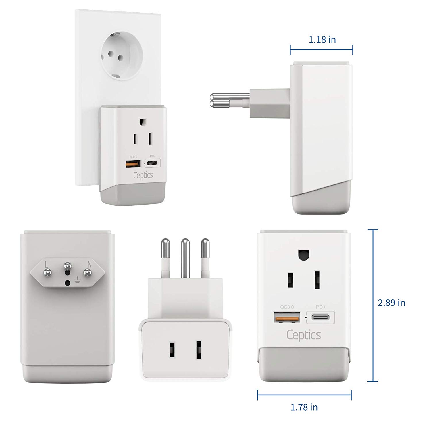 The AP-11C is designed in the US and it’s our newest travel adapter to use in Type N outlets with Smart- Voltage USB ports. It features two sockets to connect a N. American 2-prong or a 3-prong power cord, 1x USB-A (QC 3.0) and 1x USB-C (PD) ports with voltage to charge your USB devices such as cell phones, tablets and power bank with Smart Voltage technology at optimal speed . Charge upto 4 devices at once with this compact travel adapter!