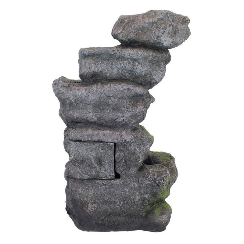 You'll be hard pressed to find a more naturalistic garden fountain than this amazingly detailed work of functional fountain art! Tranquil cascading streams of water flow down four tiers of craggy weathered stones into four LED illuminated pools to be admired day or night, creating a peaceful in-home oasis. The Breakneck Falls fountain is perfectly sized to be placed anywhere, from a deck to a patio table. Cast in quality designer resin and hand-finished to replicate a natural stone waterfall, this investment in garden art features an integrated, UL-listed, indoor/outdoor pump that brings the soothing sound of cascading water to your home. Another creative sculptural fountain from the Design Toscano "Small Wonders" collection that will make a delightful gift for yourself or a friend! 11"Wx9"Dx17½"H. 10 lbs.