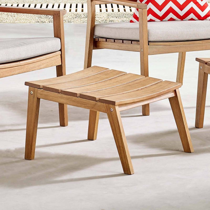Blend the innovative charm of rustic accents and lakeside cabin style with the Breton Outdoor Patio Wood Ottoman. Solidly constructed with FSC Certified ash wood, Breton is a versatile patio ottoman designed to stand out in any outdoor decor. Crisp lines highlight the subtle bowed frame and slatted seat that flow smoothly into the four tapered legs of this organic piece. Enhance your patio, porch, poolside, or deck with the Breton Outdoor Patio Ottoman. Ottoman Weight Capacity: 220 lbs.
