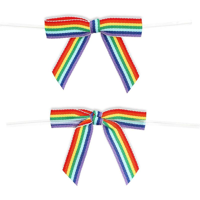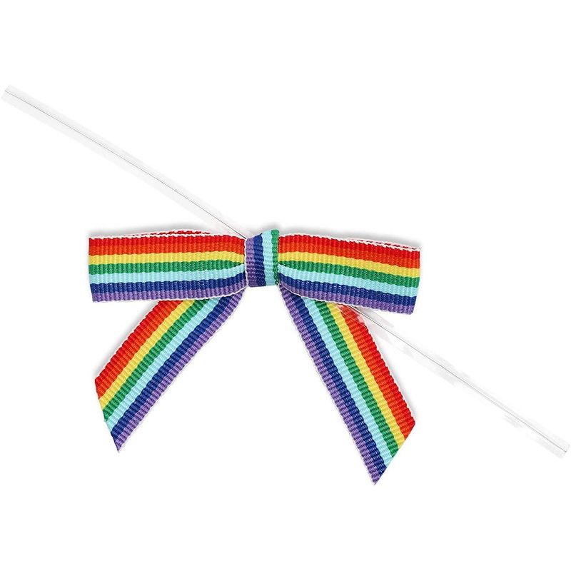 100 Pack Rainbow Satin Bow Twist Ties with Clear Twist Ties for Treat Bags, 3"