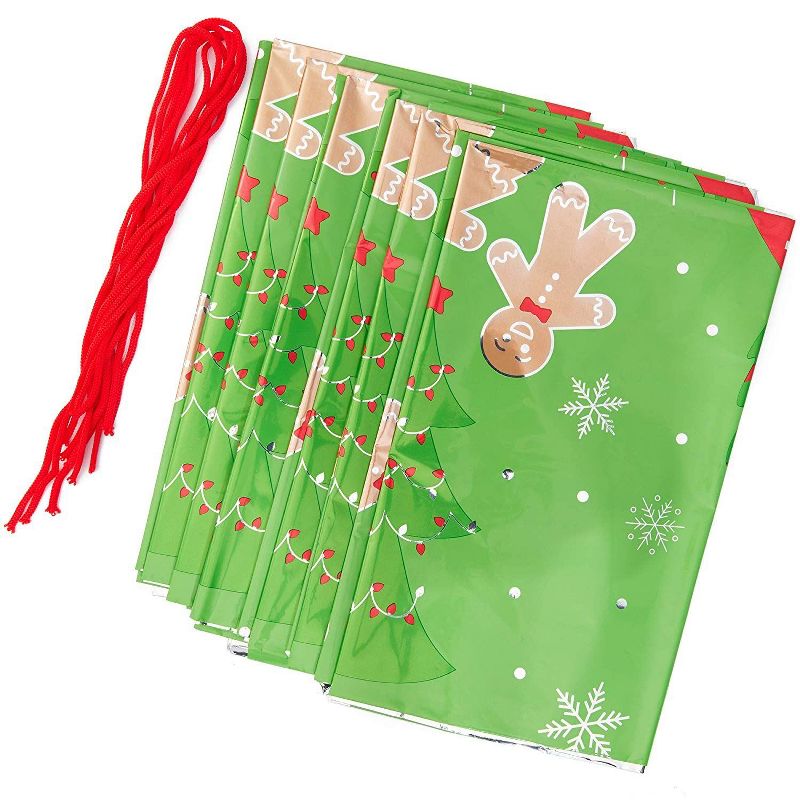 6x Gingerbread Man Jumbo Plastic Gift Sacks Large Christmas Bags Green 36x48"