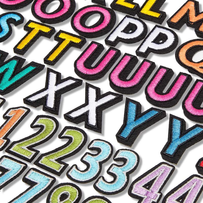 Alphabet Letter and Number DIY Iron Patches, Multicolored (1.4 x 1 In, 82 Pack)
