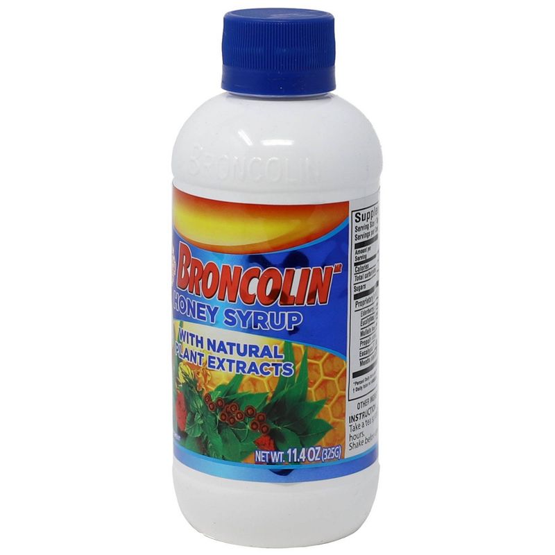Use Broncolin Dietary Supplement Honey Syrup with Natural Plant Extracts - 11.4 ounces to coat your scratchy throat. It can be taken as a cough syrup or added to warm tea. This syrup with honey, menthol and eucalyptus oil has a pleasant honey-mint flavor that is so soothing. Use as directed.