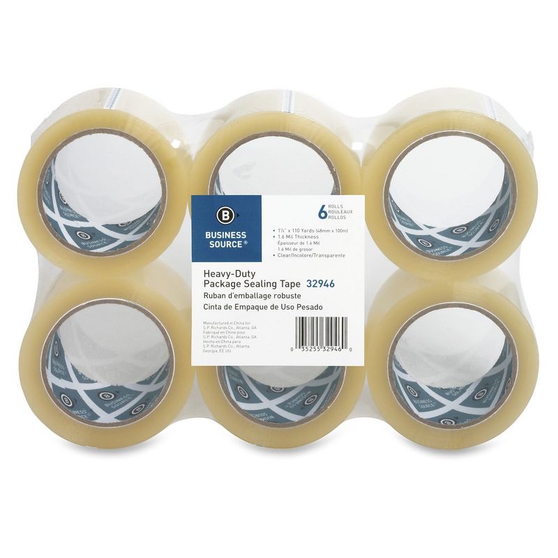 Heavy-duty packaging tape delivers a firm and strong bond. Tape resists tearing, splitting and breakage. Tape has a 3" core and a 1.6 mil thickness . Sold as 6/Pack.