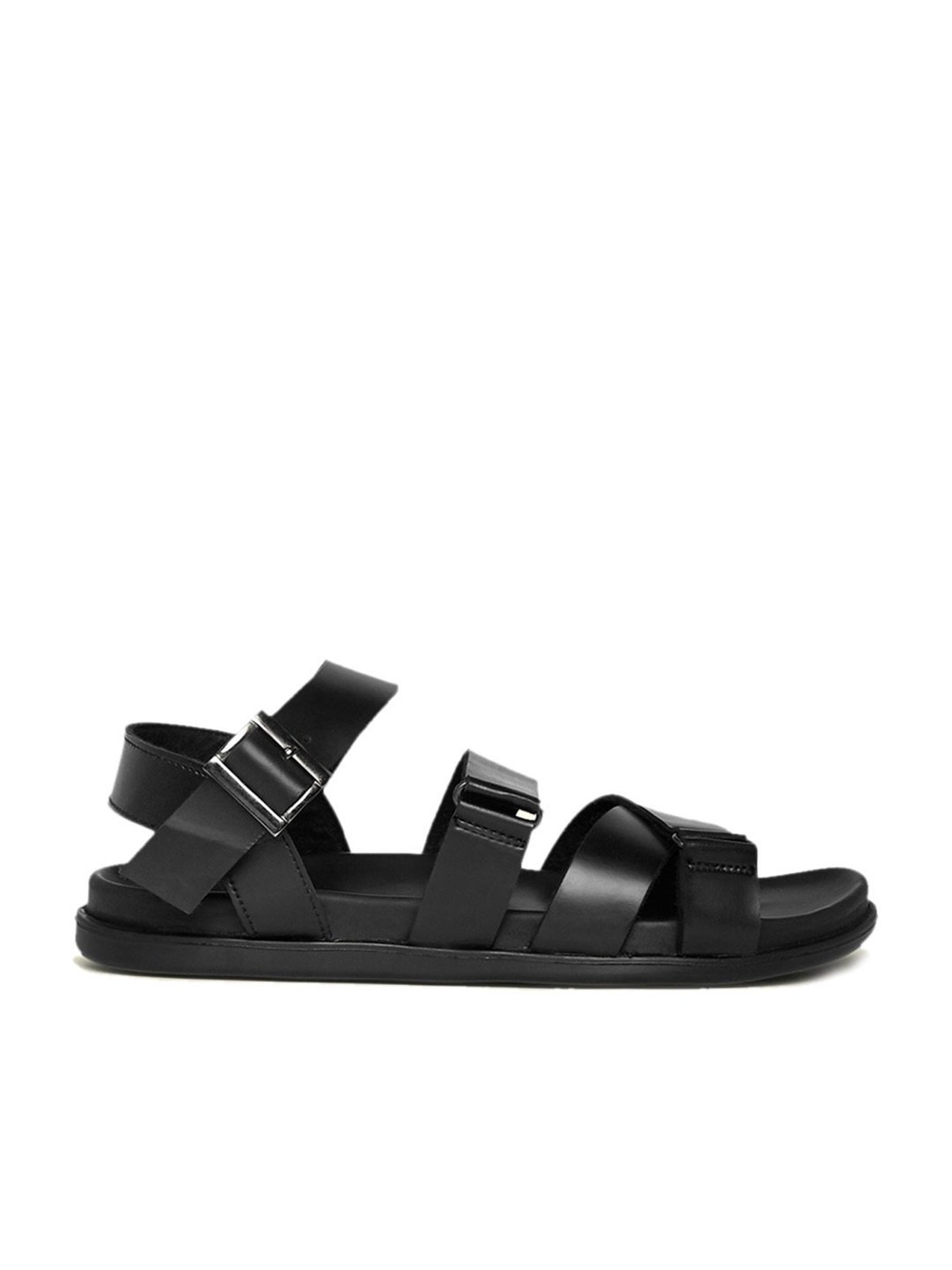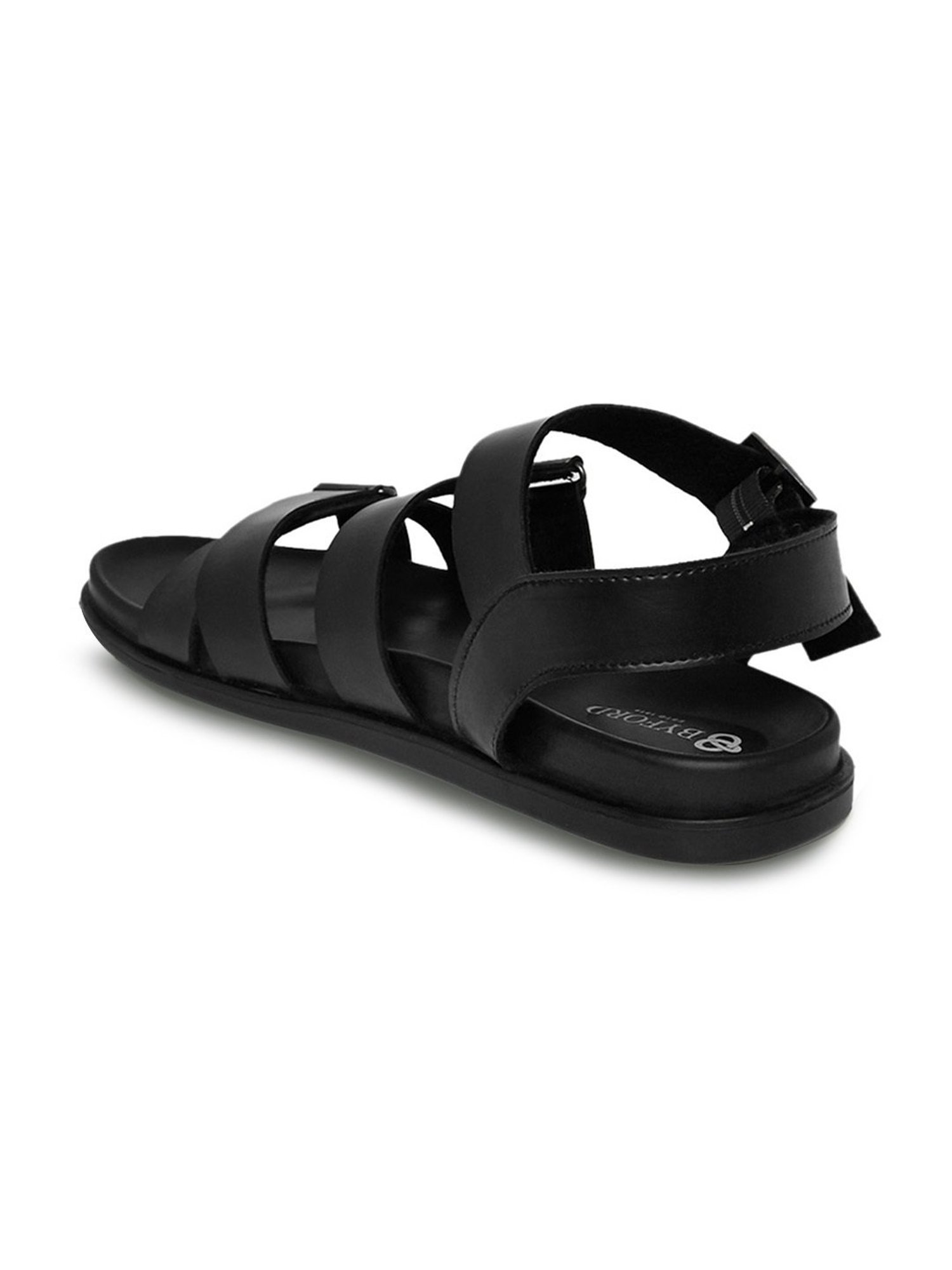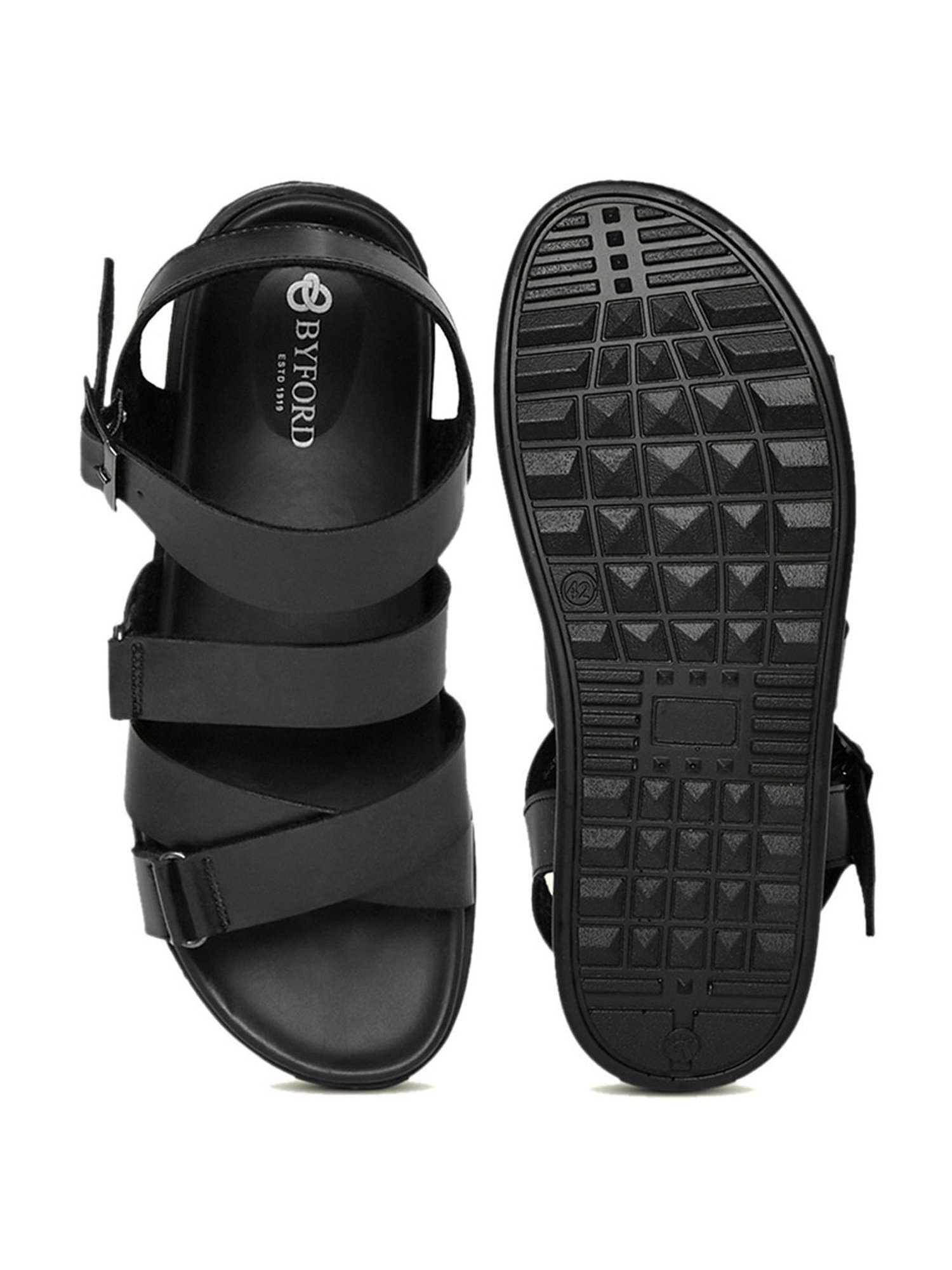 Rev up your smart look as you wear this pair of black casual sandals from Byford by Pantaloons. The slip-resistant PU sole ensures that you do not trip or fall on any surface. Moreover, the stylish manmade leather upper will give you a distinct look. Team it with a pair of jeans and a T-shirt for any casual occasion with your friends.