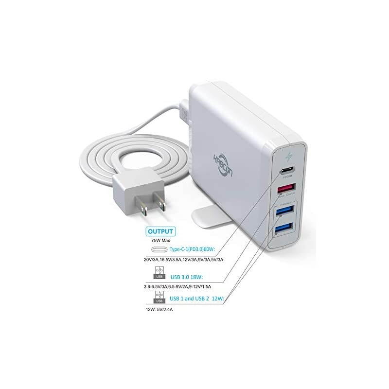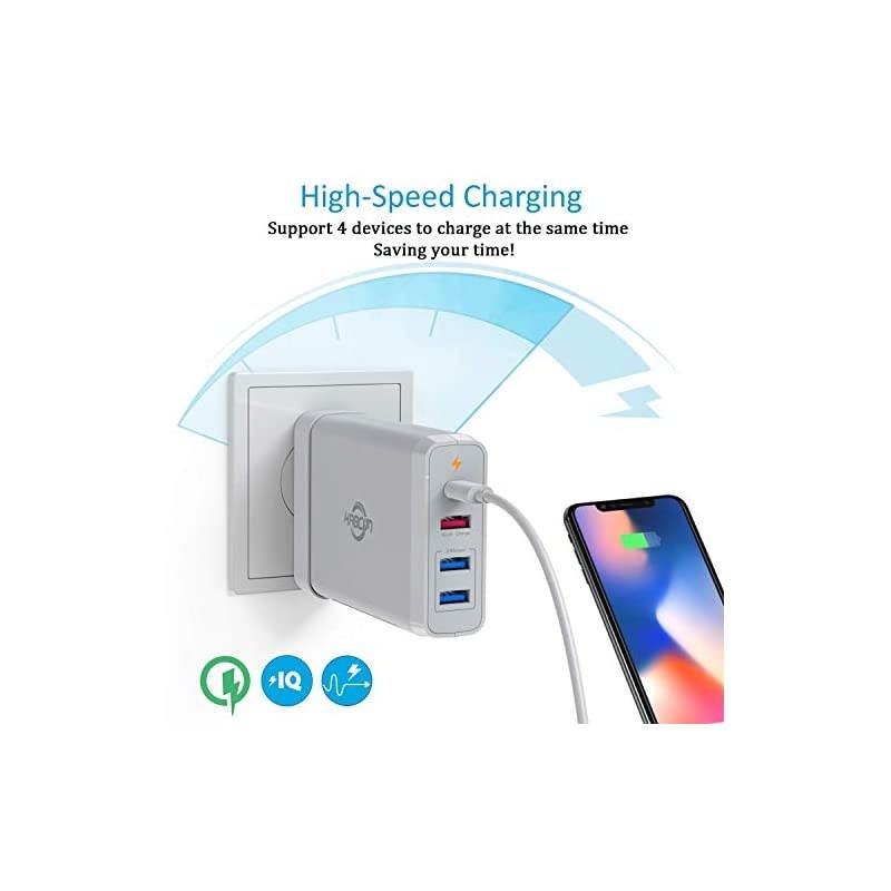 Compatibility: 75W 4-Port High speed charger with PD Type C port and QC 3.0 port deliver the fastest possible charge to almost any device, such as smartphones, laptops, tablets and more.