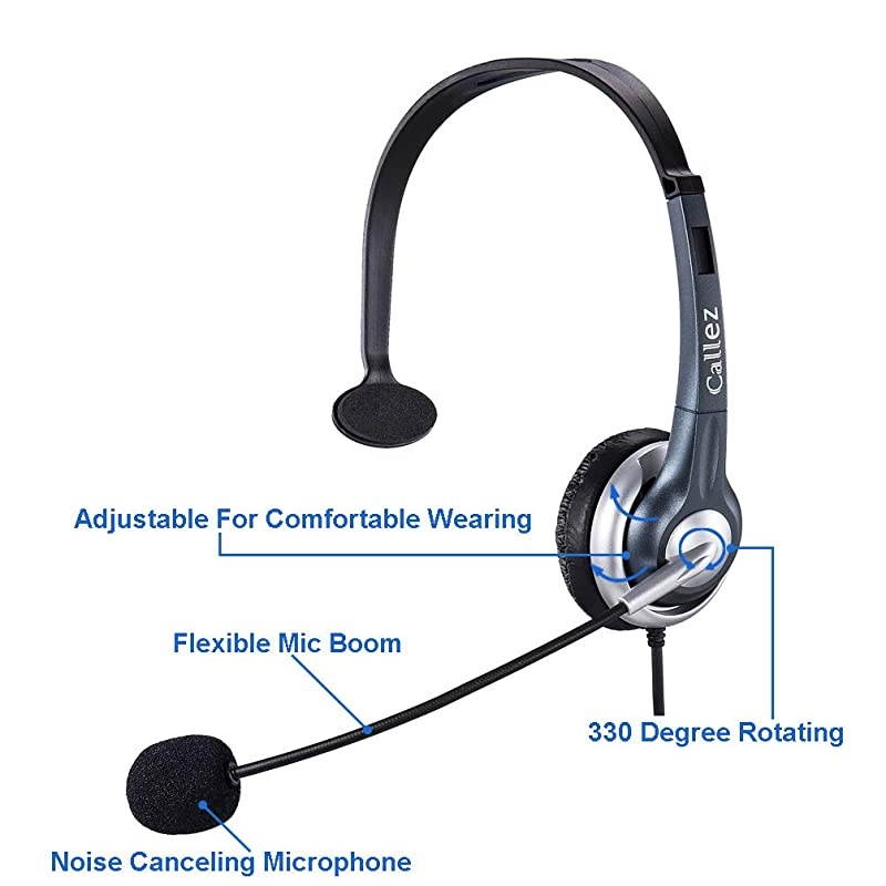 *****Comfortable Wearing: Monaural cell phone Truck Driver headset with soft leatherette ear cushions guarantees a perfect fit. Lightweight office telephone Skype headset equipped with adjustable headband for all-day wearing comfort.