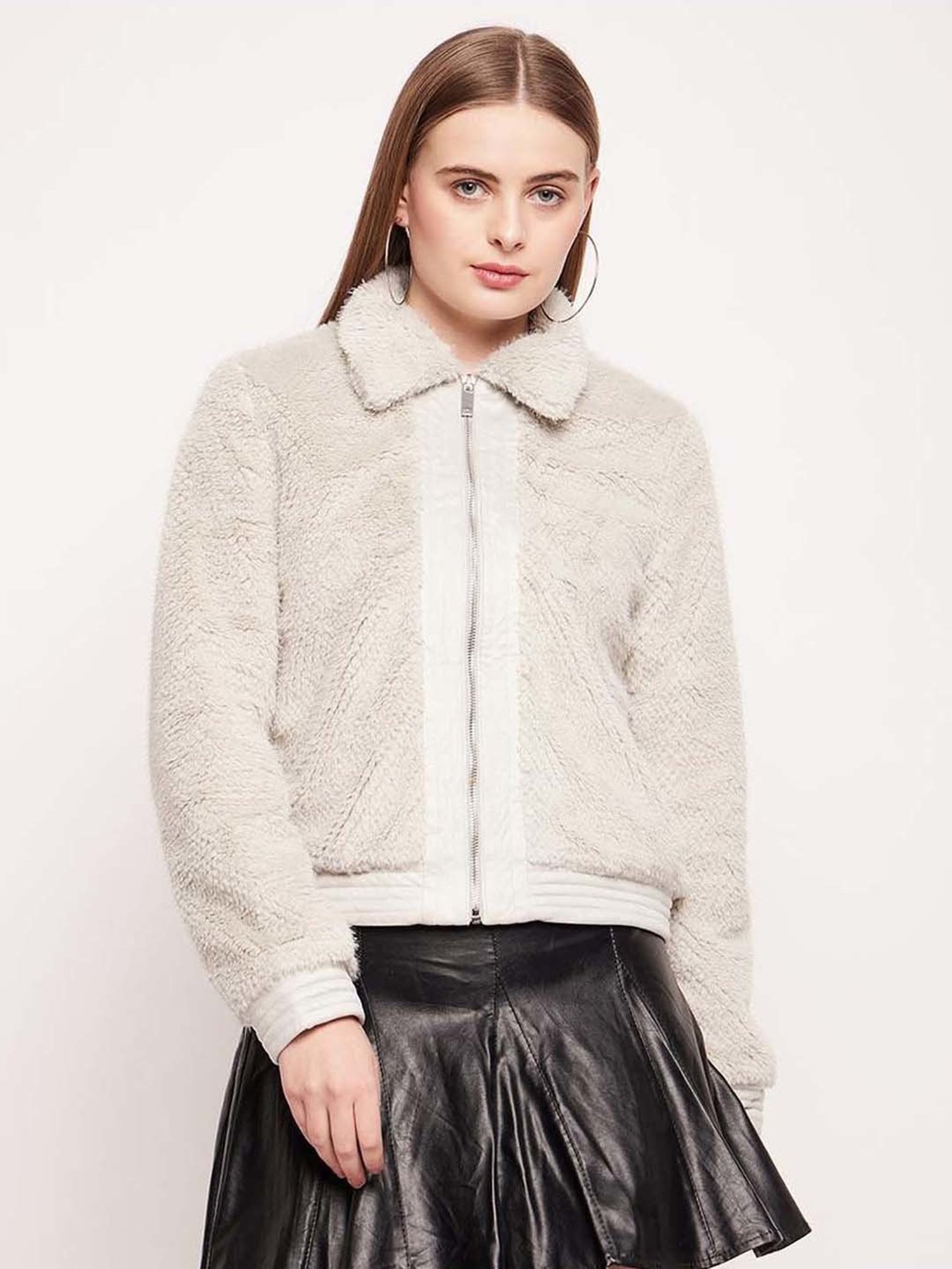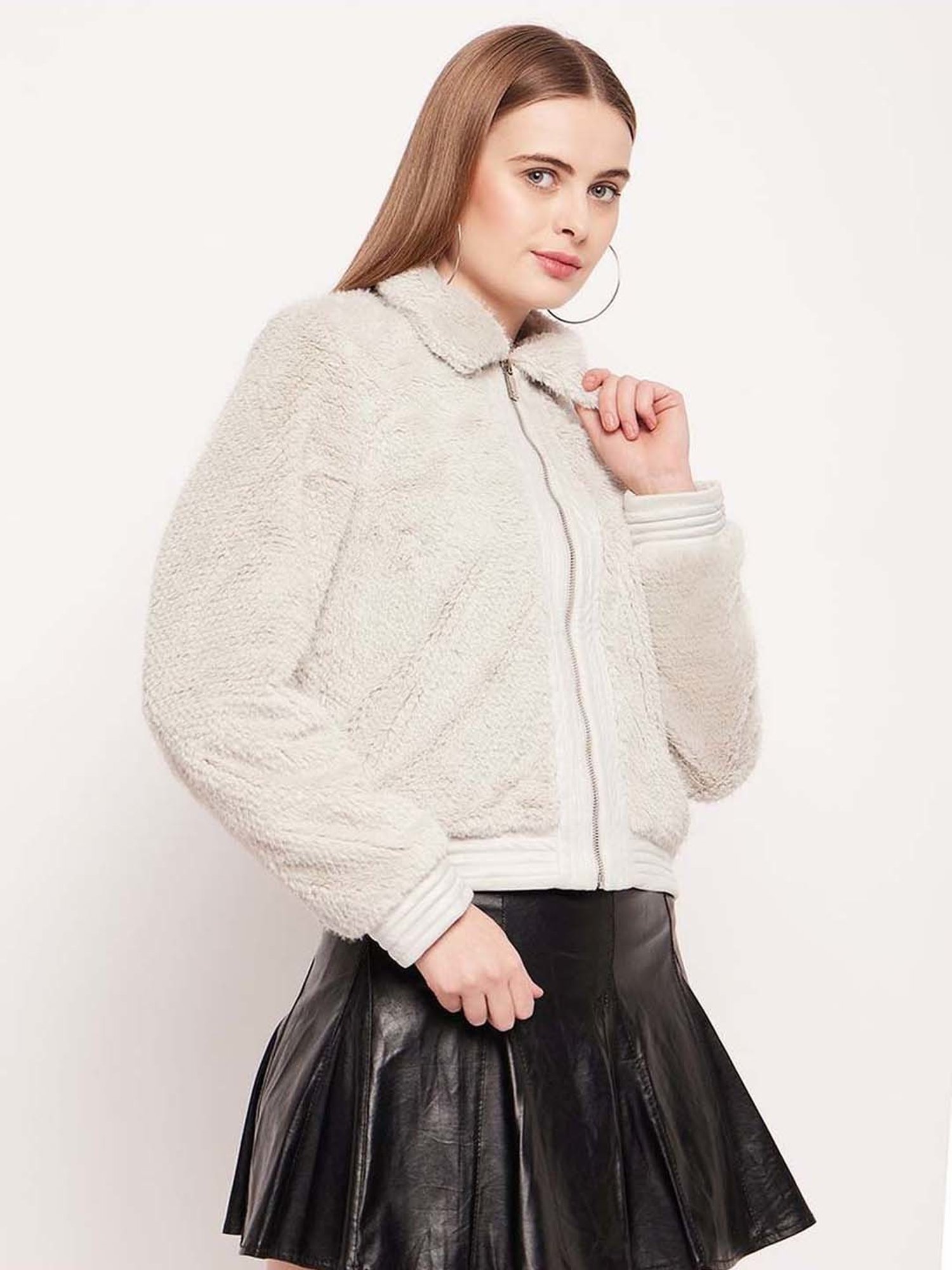 Channel a winning style by wearing this grey jacket from Camla. Tailored to sartorial perfection from premium quality fabric, it assures a soft and soothing touch against the skin. The shirt collar adds to its appeal. Exuding full sleeves, it is sure to fetch you compliments from all. The self pattern renders it fashionable.