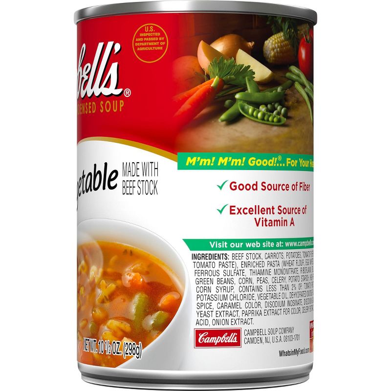 Campbell’s Condensed Healthy Request Vegetable Soup deliciously blends farm-grown veggies like carrots, potatoes, peas and green beans with letter-shaped pasta and savory beef broth. We simmer it for hours to give it that one-of-a-kind flavor that tastes just like home. Serve as-is or pair with a salad or sandwich for a quick, easy meal.