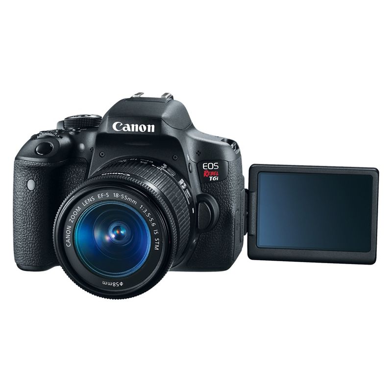 For gorgeous, high-quality photos and videos that are easy to share, look to the Canon EOS Rebel T6i camera. The EOS Rebel T6i does more, easier, making capturing photos and shooting videos a breeze. Its high-resolution 24.2 Megapixel CMOS (APS-C) sensor means finely detailed, crisp and natural-looking photographs. An updated light-metering system means well-exposed images. HD videos are effortless with the EOS Rebel T6i's advanced AF that provides speedy and precise focus on subjects. Canon's advanced EOS Scene Analysis system automatically adjusts the camera's settings to produce the best results whether shooting friends, landscapes, sports scenes and in tricky light situations. A first ever for the EOS Rebel line, built-in Wi-Fi® and NFC are now available! Wireless connectivity provides a seamless way to exchange images and movies with compatible devices. It's easier and more convenient than ever to share movies and photos, no matter the location. Near Field Communication* (NFC) allows for easy pairing with compatible Android™ devices** and Canon's new Connect Station CS100 device! With fast performance in a number of shooting environments, the EOS Rebel T6i does the hard work, letting you focus on making gorgeous photos and HD movies.