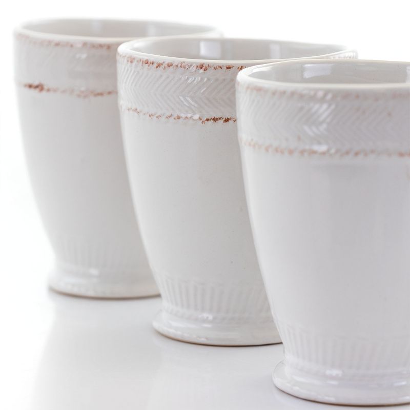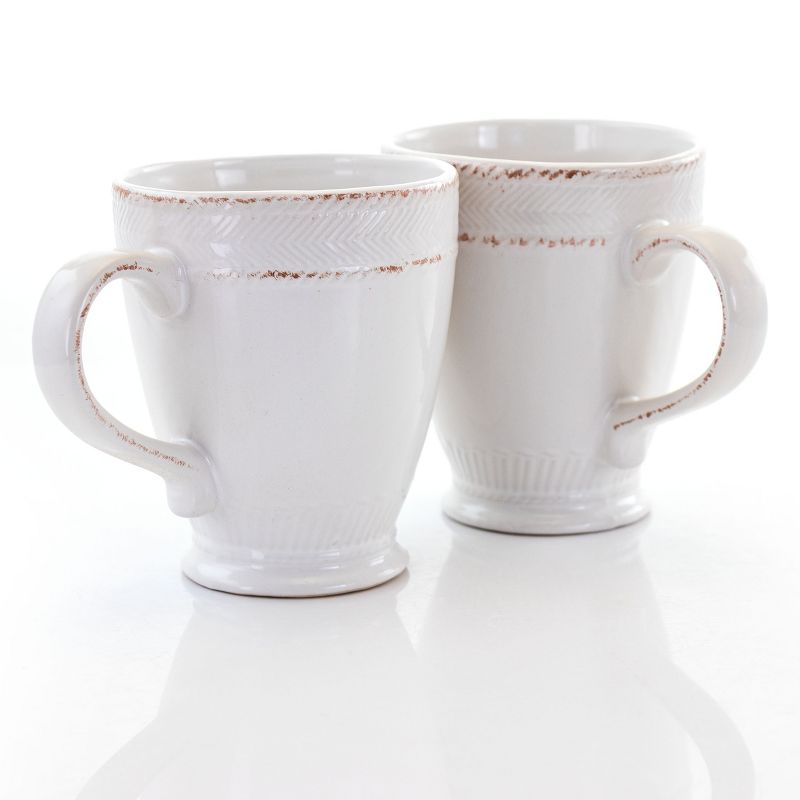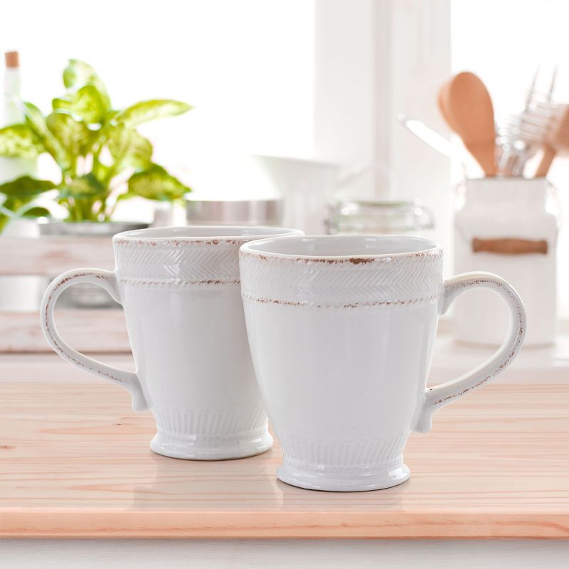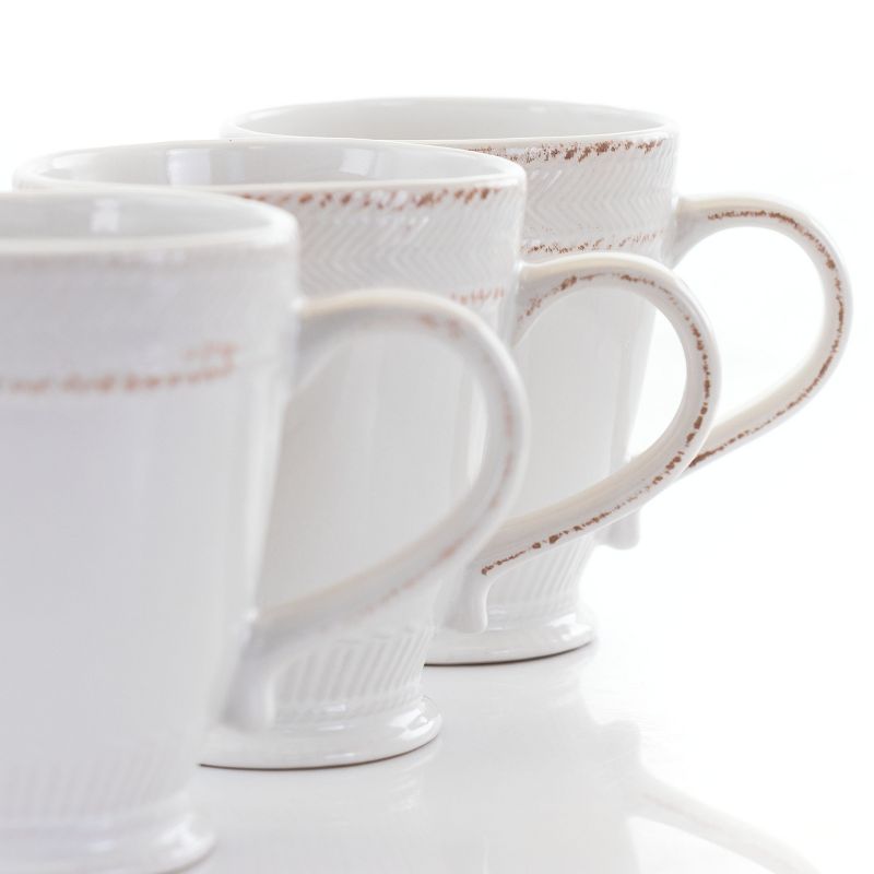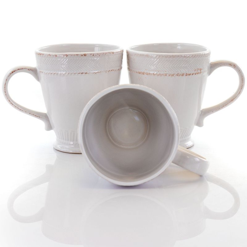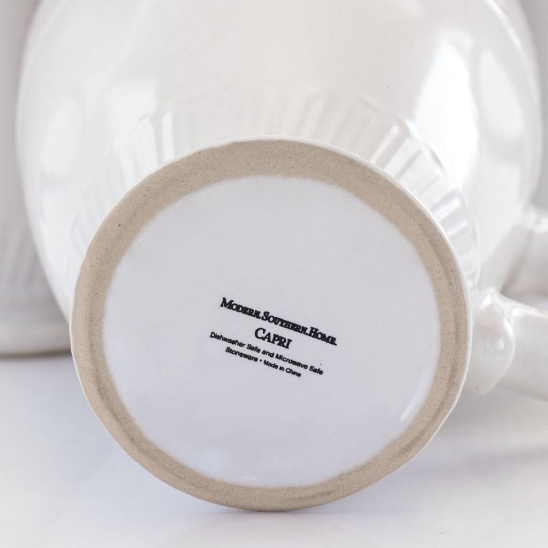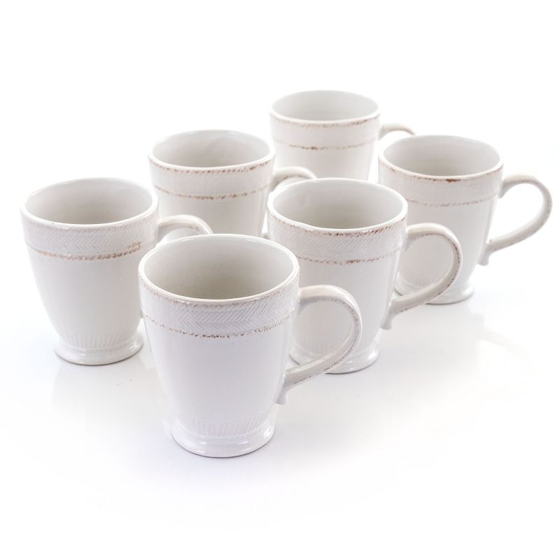 The Capri Corda 6 Piece 14 Ounce Stoneware Cup Set in White brings home classic rustic comfort. Guest will gather and admire the rough weave that encircles the lip. The creamy white and scuff like texture lets the set really show off warm style. It's durably made out of a long lasting stoneware construction. This drinkware set is dishwasher safe for easy cleaning and microwave safe for fast heating.