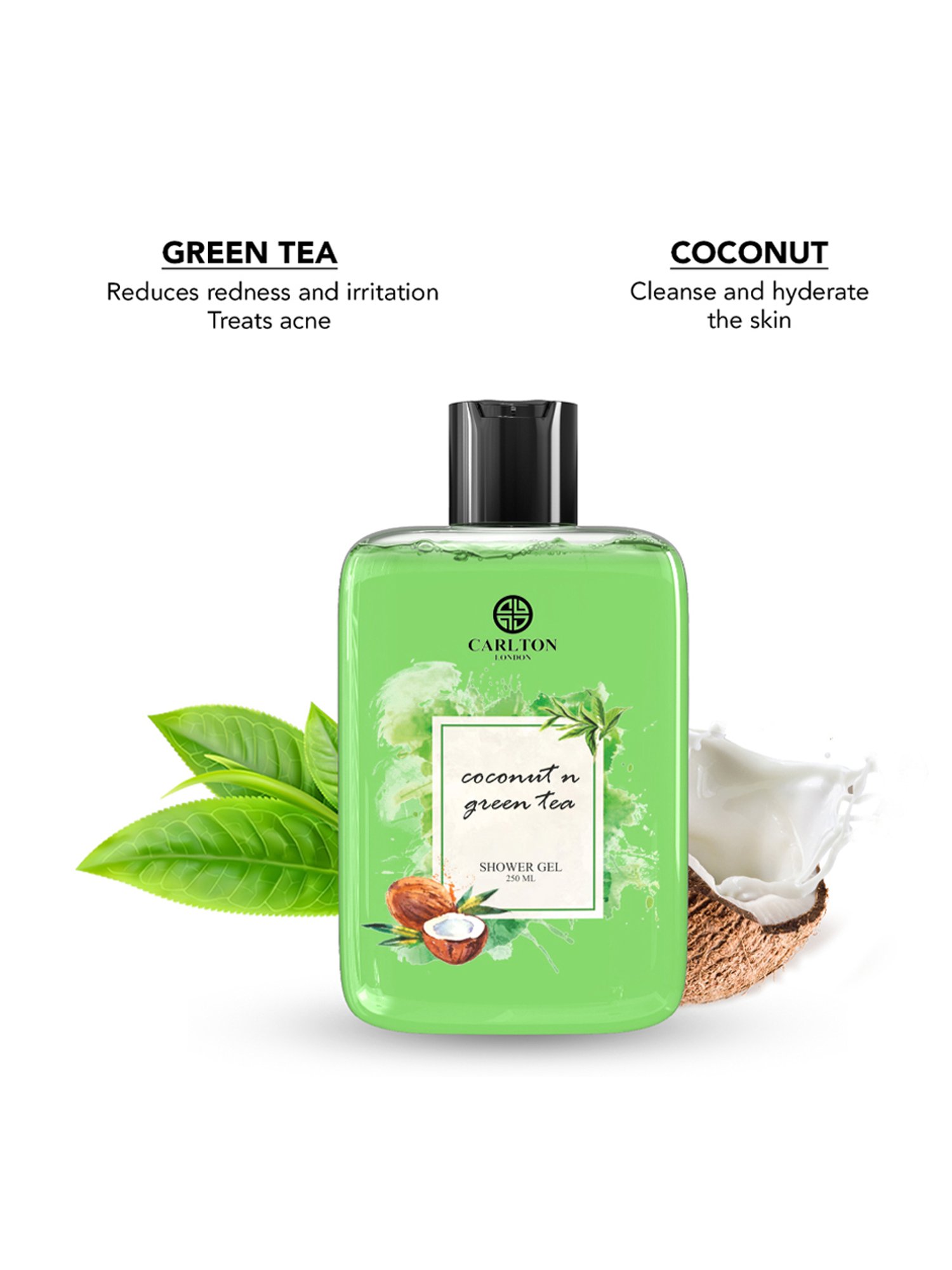 Carlton London Women Coconut & Green Tea Shower Gel provides intensive hydration and effective cleansing with its purifying beads. We all want to keep our skin looking healthy, nourished and well cared for, and it's much easier to make that a regular part of your routine if you've found a moisturising body wash such as this one. On hot summer days, our skin needs to cool down and rehydrate to retain its softness and shine. This set contains Carlton London Coconut and Green Tea Shower Gel - 250 ml, Carlton London Coconut and Green Tea Body Lotion - 250 ml.