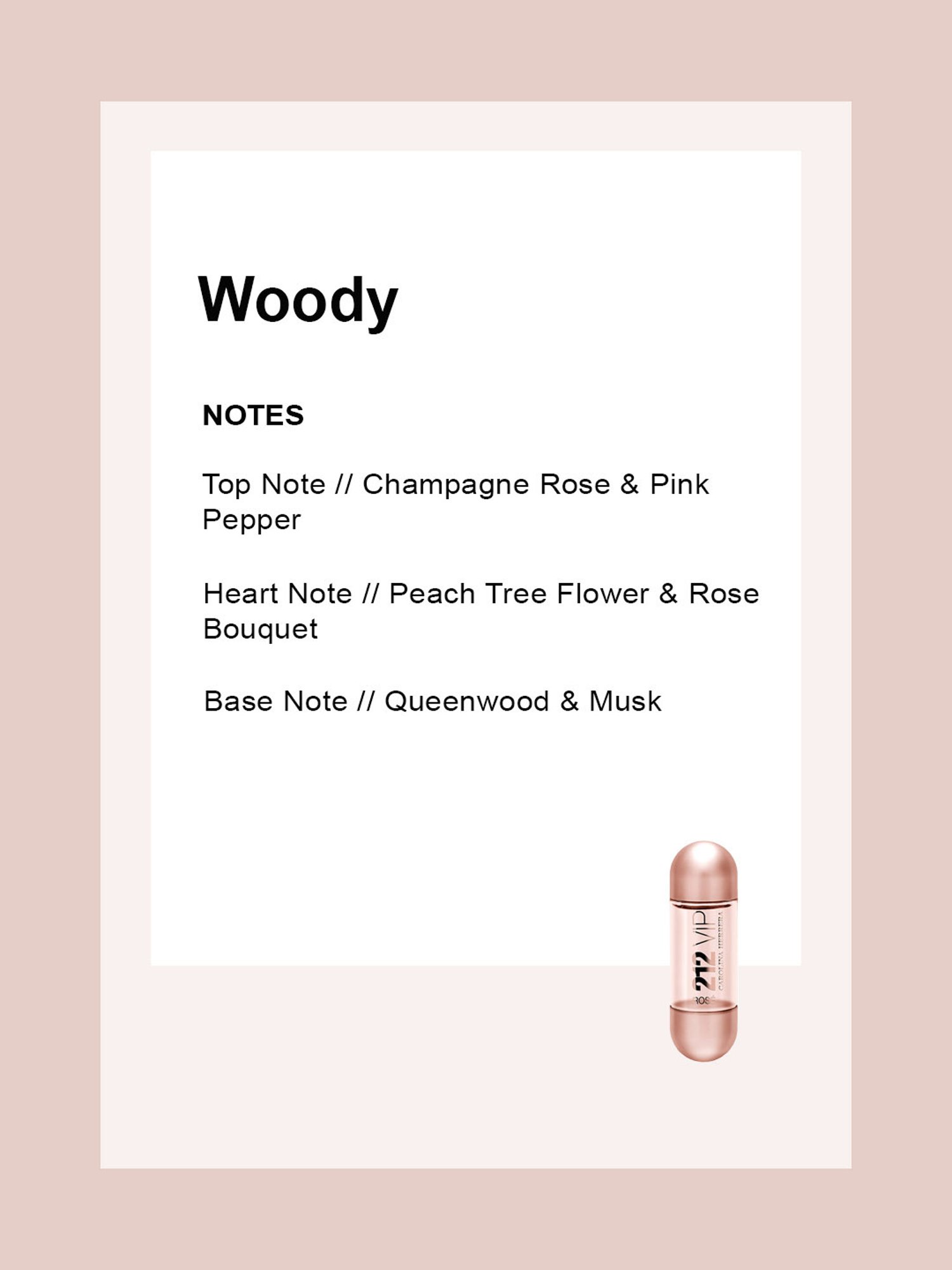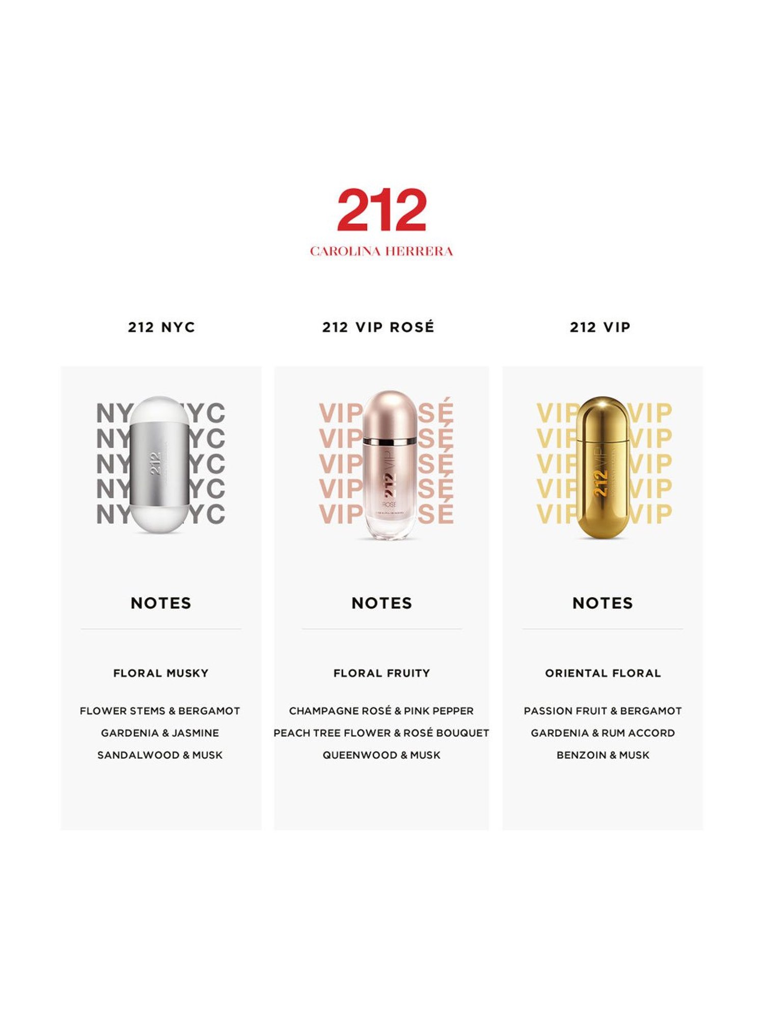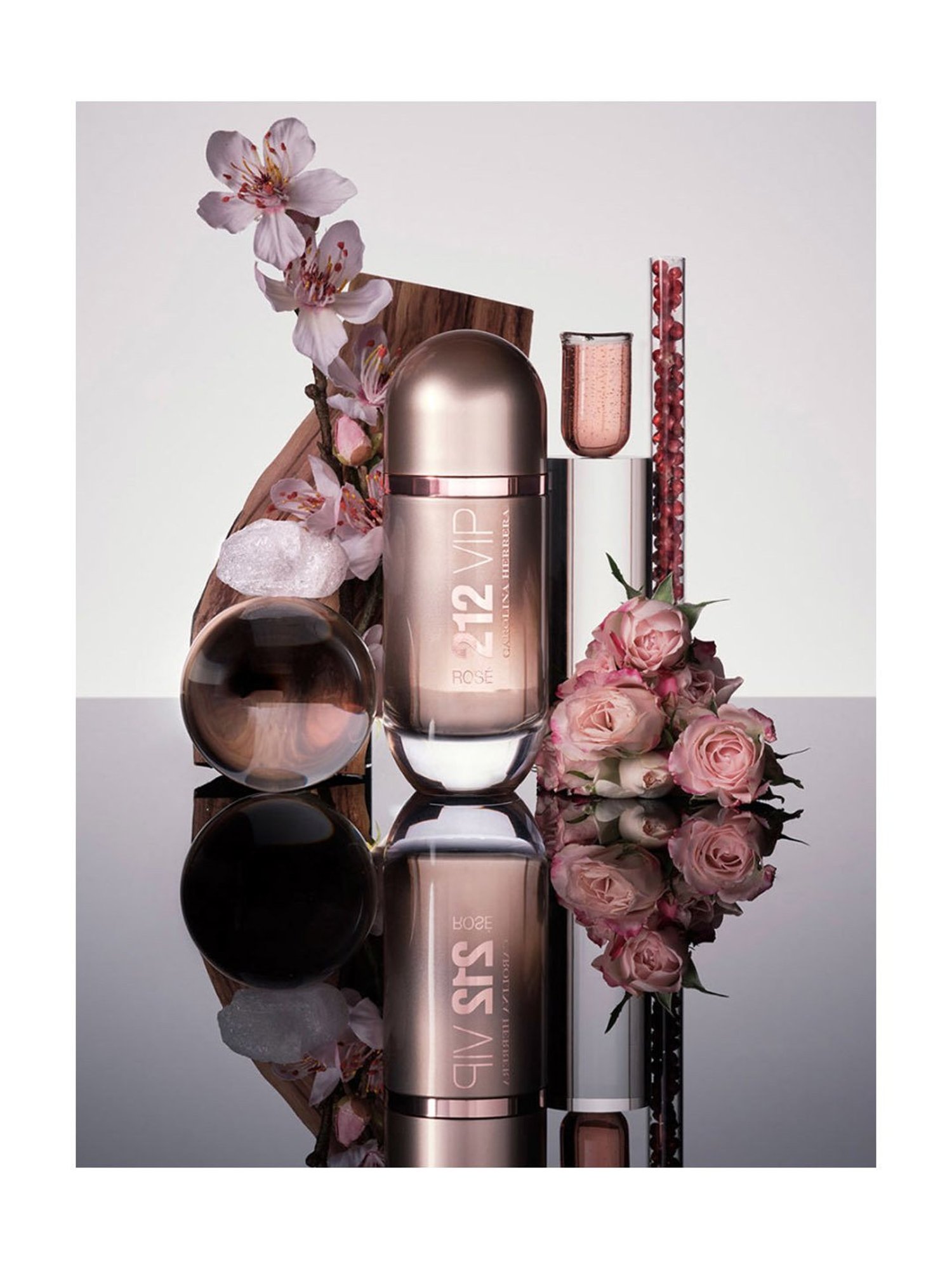 With a fresh and carefree air, this eau de parfum injects even more temptation, more glamour, more emotion and more party into the 212 VIP world. The fragrance is born to be the heart and soul of the best party in NYC. It is a new feminine design with new materials and definitions. The fragrance is presented in a glass bottle with a sophisticated degraded effect in matt rose. An engraved ring, the VIP signature and the magnetic cap give the bottle a fresh, cool and chic femininity.