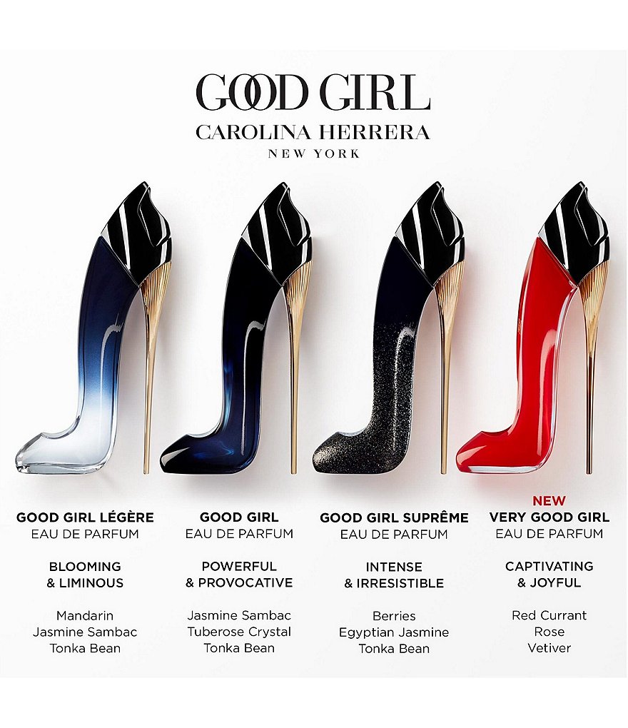 Fun, fabulous, and fearless, Very Good Girl is a bold new interpretation of the iconic Good Girl scent. Evolving Carolina Herrera's vision of the duality of the modern woman, this irresistible fragrance will walk straight into your heart with its seductive rose scent and red-hot design. Very Good Girl takes you on a surprising olfactive journey, starting with top notes of playfully mischievous redcurrant and exotic lychee, leading to a seductive heart of a rose. Vetiver and vanilla base notes provide a surprising and contemporary finish.