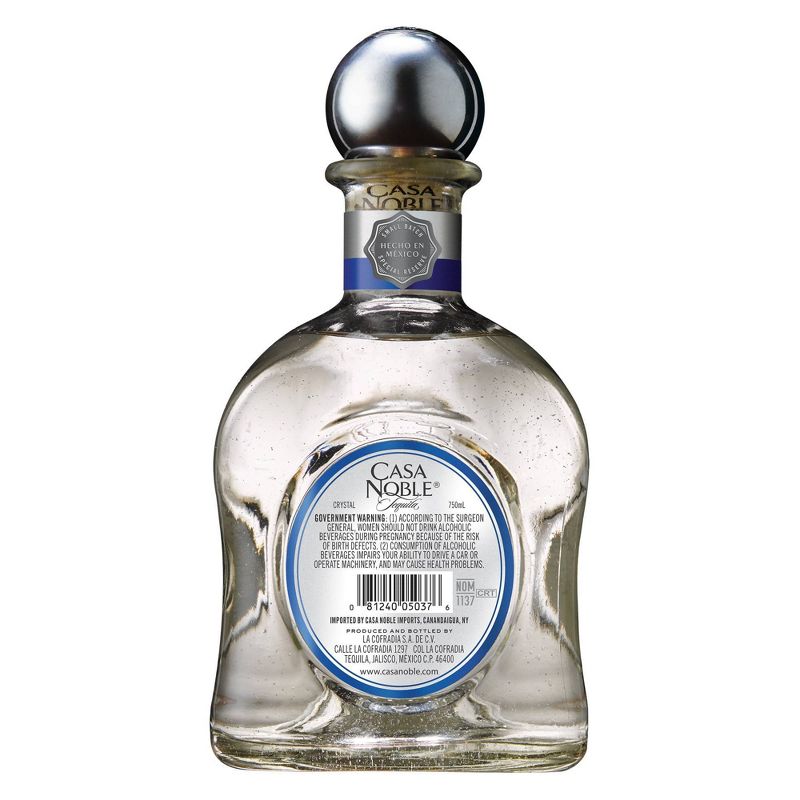 Casa Noble Crystal Blanco Tequila concentrates its crisp, clean taste in small batches. Made with 100% blue weber agave grown in the rich, volcanic soil of Jalisco, Mexico, this bottle of tequila has a smooth flavor with unique characteristics. Aromatic essences set the palate for flavors of honey and buttery-sweet cooked agave. A hint of citrus completes the profile. Triple distilled and certified organic, this ultra-premium, limited-run blue agave tequila is truly one of a kind. Enjoy this Mexican tequila in a margarita or as part of your favorite tequila cocktails. While you're at it, make a drink for your friend. Casa Noble makes Tequila Worthy of Sharing. Be Noble. Drink Responsibly. © 2020 Casa Noble Imports, Canandaigua, NY. Tequila. 40% alc. by vol.