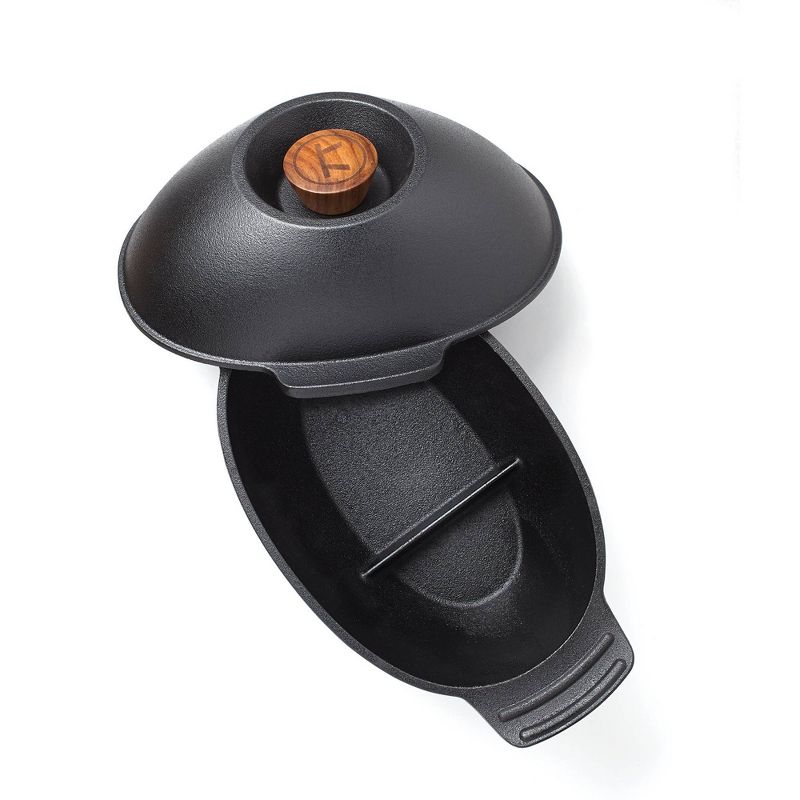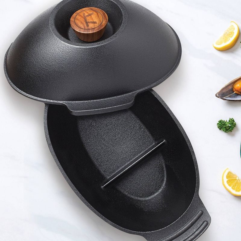•BEAUTIFUL and MULTI-FUNCTIONAL DESIGN - Unique oval design accented with an Acacia wood knob and comfortable handles, perfect for cooking mussels or clams with your favorite broth; lid doubles as a vessel for collecting empty shells