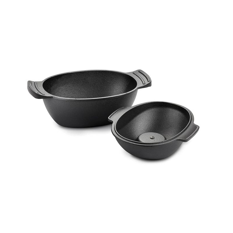 •CAST IRON SEAFOOD POT with LID - Make delicious seafoood creations with the Outset 2.5 quart capacity seafood and mussel pot, perfect for grill to table cooking and serving -safe for use on grill, stove top or oven!