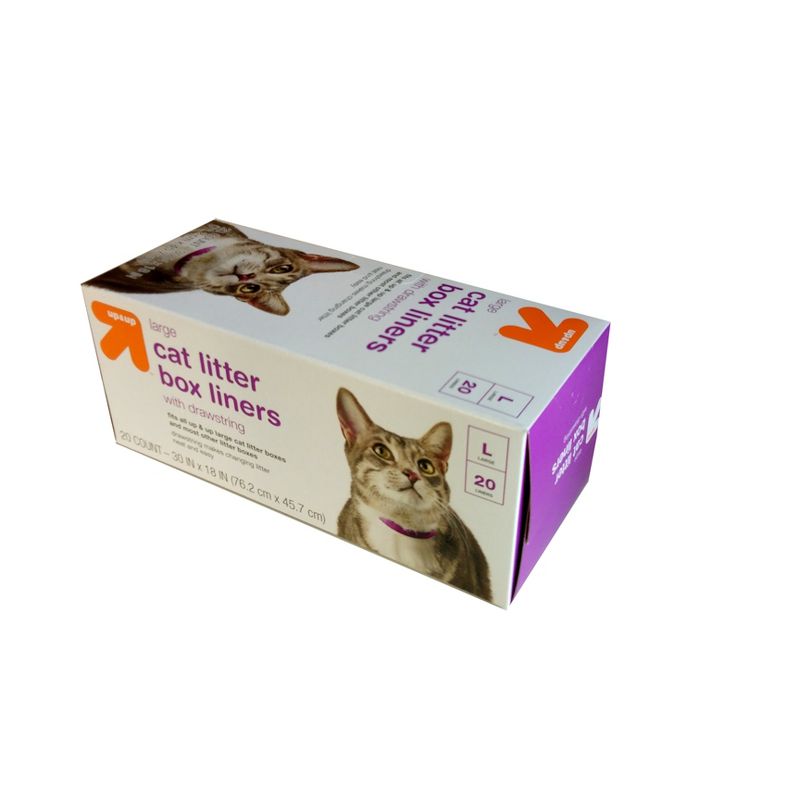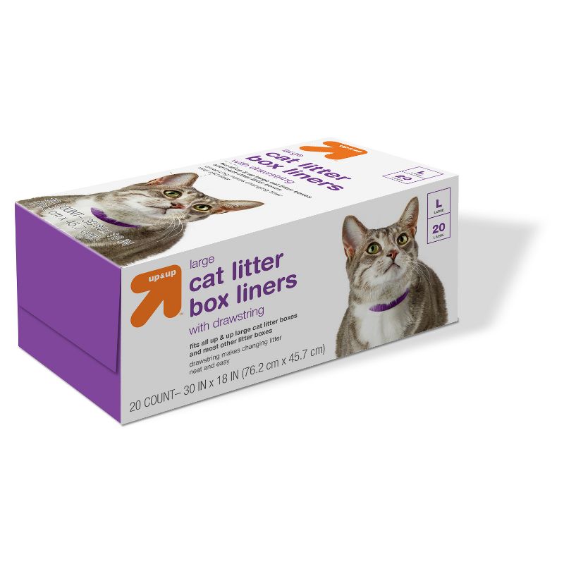 You won't have to deal with any more litter box mess once you start using these disposable up & upâ„¢ Cat Litter Box Drawstring Liners to line the bottom of your cat's litter box. These durable & tear-resistant liners will prevent waste from sticking to the sides and bottom of the litter box. Cleaning your cat's litter box is now easier than ever-just pull the drawstrings on both sides of the bag to close then dispose of with your regular trash. These litter liners fit all up & upâ„¢ Large Cat Litter boxes and most other litter boxes. Large Drawstring liners are 20ct - 30'' x 18''.