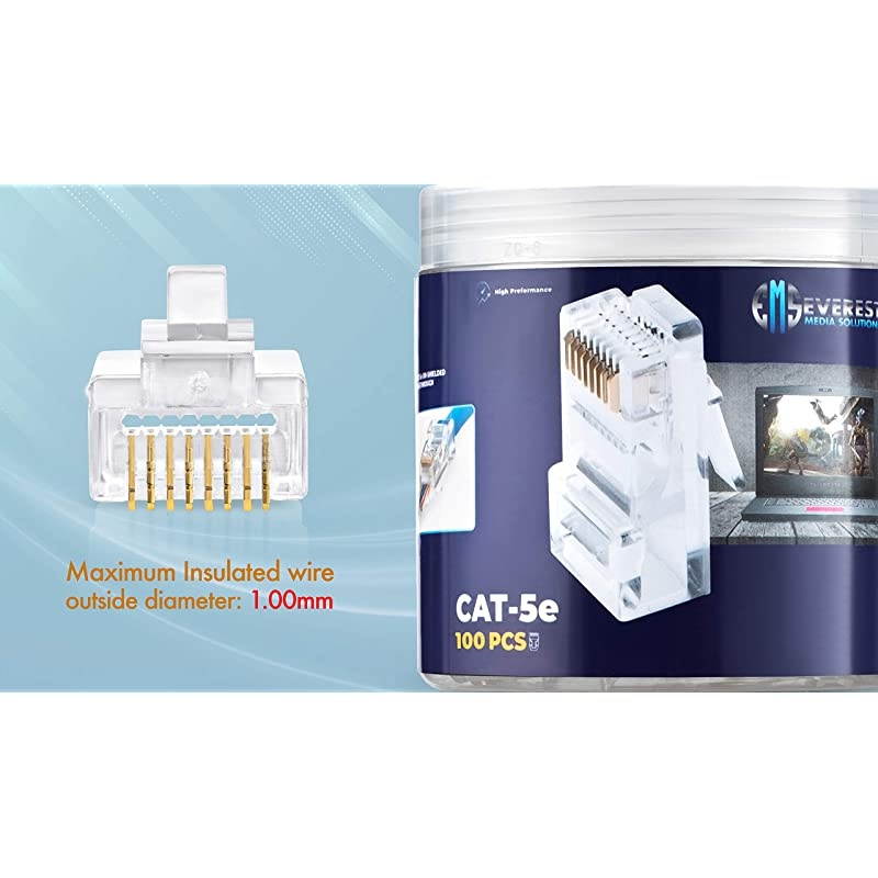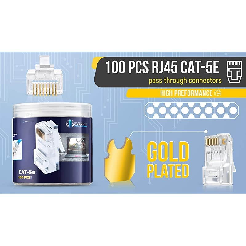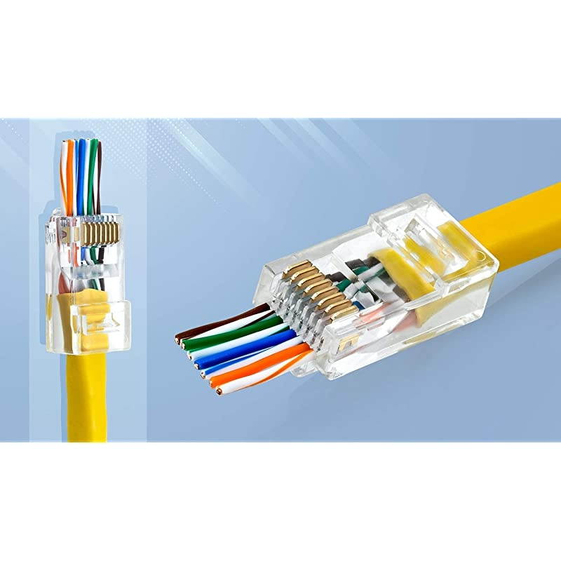 Color: Cat5/5e 100 PcsWhen you don't place plugs on cables for a profession, it can be challenging to do on those occasions when it becomes necessary. Lets face it. If you have already tried creating patch cables with random connectors, you have probably already faced these issues: hard to insert, not compatible, hard to use, extremely time consuming. Dont fret. We got you covered, even if you have no prior experience. The PassThrough technology optimizes cable termination crimping and connections leading to high level of productivity and resulting in time and cost savings. GTZ Pass-through UTP Cat5e connectors make it easy by allowing the wires to pass all the way through the plug so you can verify they are in the correct order before crimping the plug. Once added, you will immediately notice that the solid connection not only boosts performance, but also inhibits frequency noise. Here are the benefits you can enjoy at a glance: Easy to use, even if its your first time You can use them on both solid and stranded cable. Inhibit frequency noise Enhances Signal Integrity They work for most styles and models of crimper tool, especially the GTZ crimping tool Don't leave your data connections to chance. Order your own GTZ Pass-through Cat5e plugs by clicking the Add To Cart button TODAY!