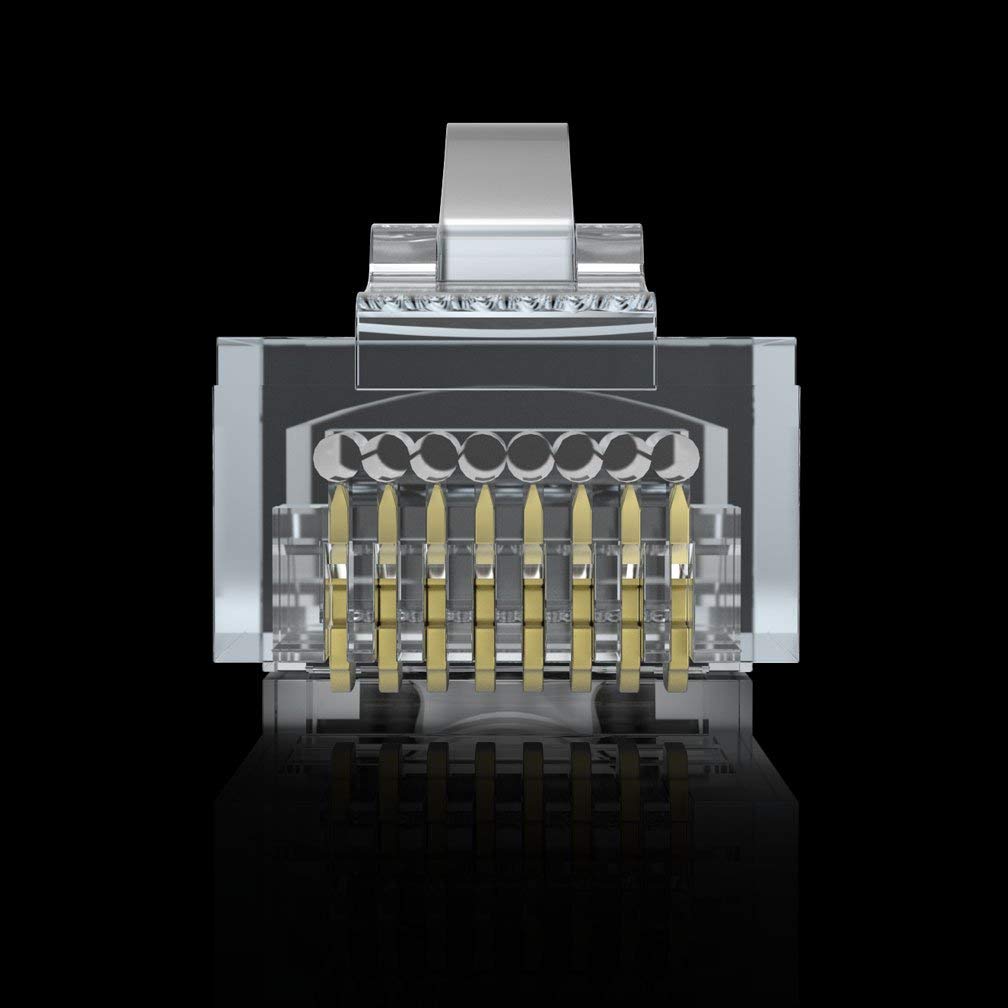 CAT5e-8P8C-3u, 10Gtek CAT5E RJ-45 UTP connector, has flexible latch and high reliable PINs. Performance matches TIA/EIA568-C requirements and passes Salt Spray 24-hour test. The combination of gold-plated contacts provides reliable performance for 10/100/1000Mbps rated network.