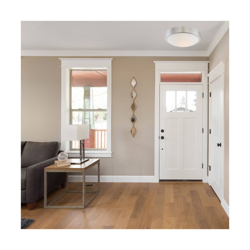 This ceiling light is an incredible addition to your home offering both function and casual design. You will love how this fixture transforms your home with its eye-catching style and function. A blend of simple design and clean lines add to the minimalistic charm of this fixture. Features a brushed nickel finish.