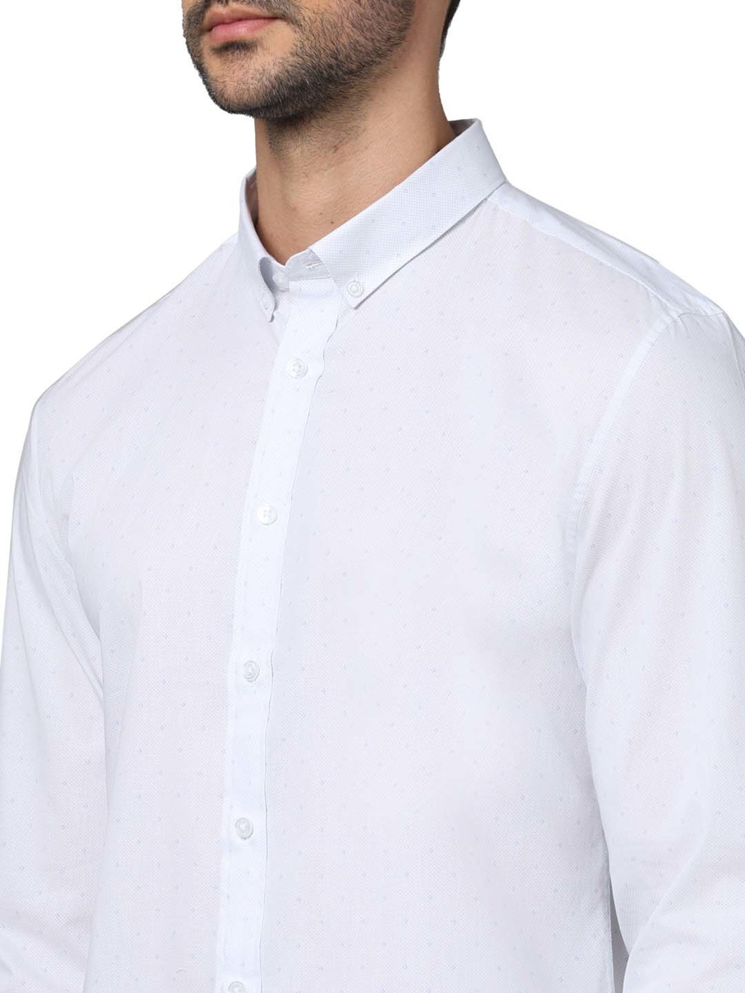 Enrich your wardrobe with warm hues of global fashion in this superb white shirt from the latest range of celio*. Masterfully crafted in premium cotton for some soft sheen adorned by a breezy feel, and unmatched comfort, it's well designed slim fit and trendy print pattern place it in a class apart. Pair it with denims for a nifty look.